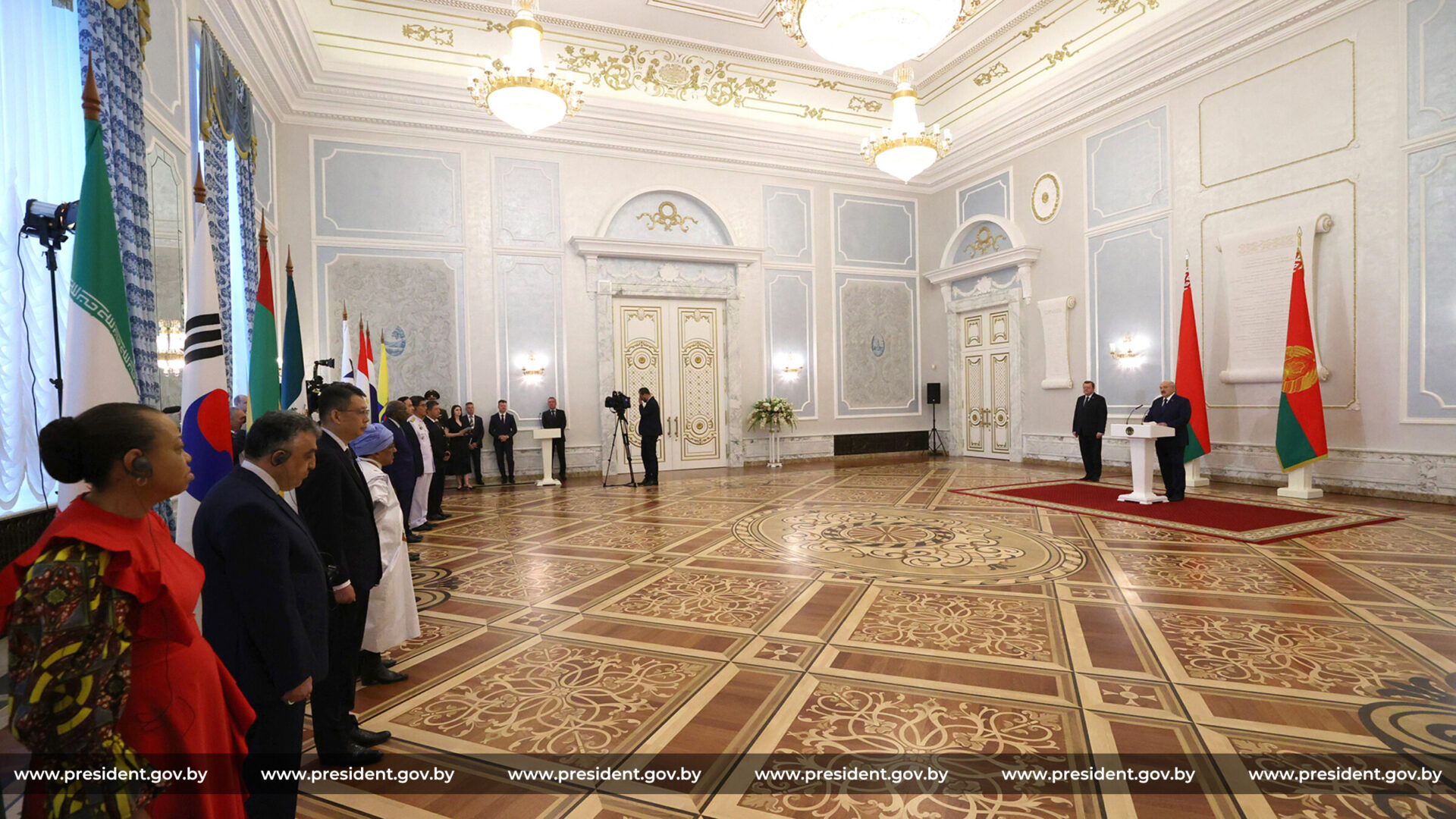По информации БЕЛТА, верительные грамоты Главе белорусского государства вручили послы Республики Гана (по совместительству), Исламской Республики Иран, Республики Корея, Исламской Республики Мавритания (по совместительству), Мексиканских Соединенных Штатов (по совместительству), Республики Панама (по совместительству), Республики Таджикистан, Королевства Таиланд (по совместительству), Республики Эквадор (по совместительству).