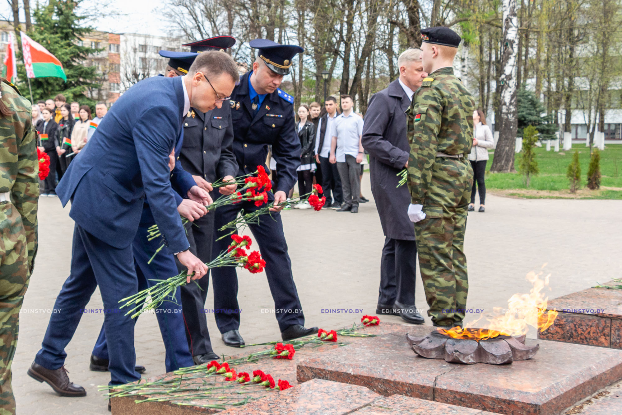— Сегодня западный мир представляет нашу историю словно негативную пленку старых фотоаппаратов, когда белое видится черным, а черное — белым. На их «пленке» Беларусь и Россия готовятся напасть на Запад — Польшу, Прибалтику. Напасть и разрушить западную демократию, уничтожить их «райский сад» с демократическими ценностями. Но здесь, у этого мемориала, уместно вспомнить нашу славную песню эпохи СССР «Хотят ли русские войны?». Пусть западные поборники спросят у белорусов, которые в годы войны потеряли тысячи своих жителей, у тех, кто нашел свой покой здесь, у тех, кто погиб от голода и холода, у тех, кто был замучен в концлагерях и убит в газовых камерах, — так хотят ли русские и белорусы войны? Да, мы готовимся к войне, как говорит наш Президент Александр Лукашенко. Мы готовимся защищать свою Родину, если вдруг такое время придет. Но чужого нам не надо, и свое — не отдадим. Мы помним уроки истории и не хотим их повторения, — резюмировал Николай Дмитриевич.