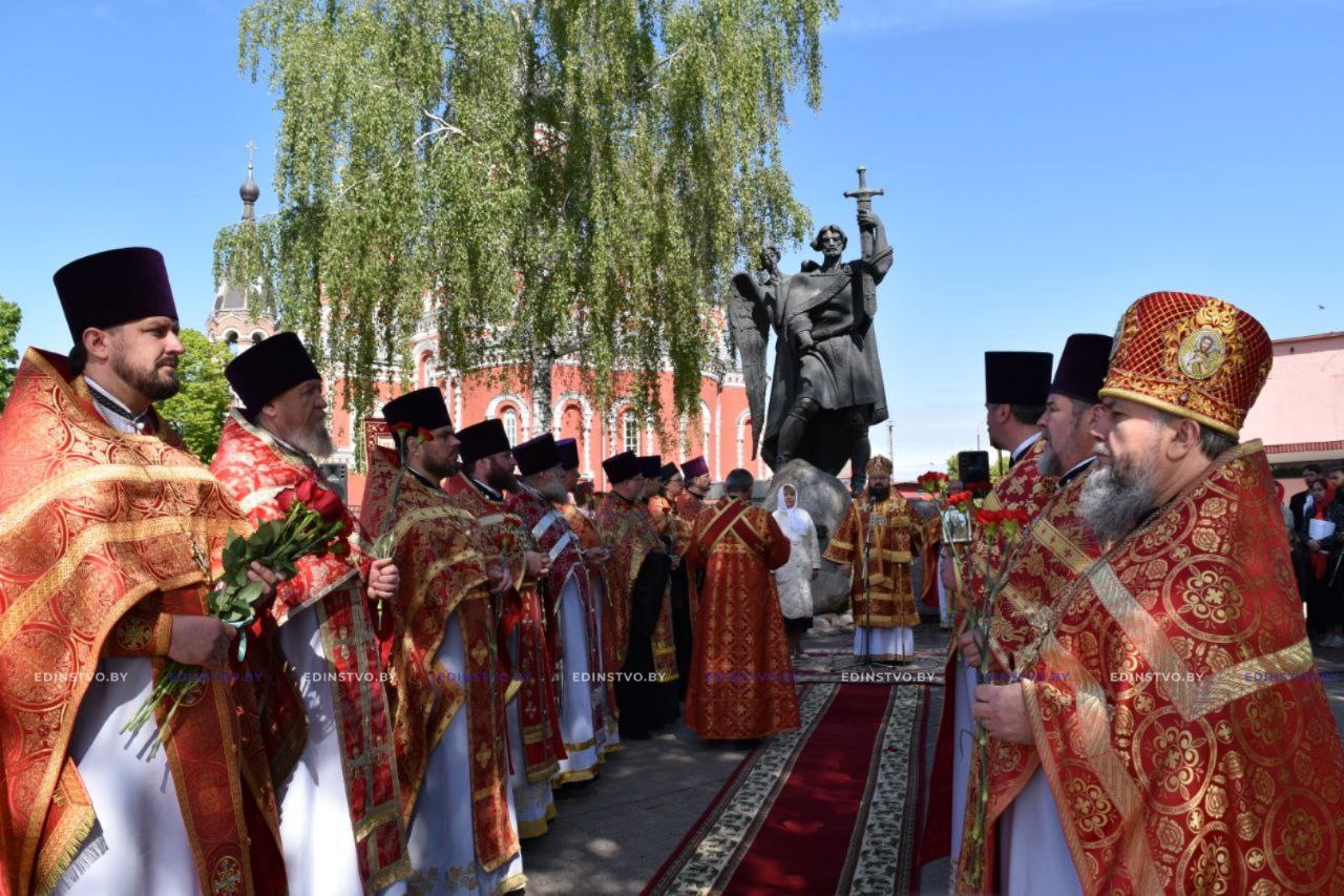 Духовенство, представители депутатского корпуса и исполнительной власти, предприятий и организаций Борисовщины возложили к памятнику князя Бориса алые розы.