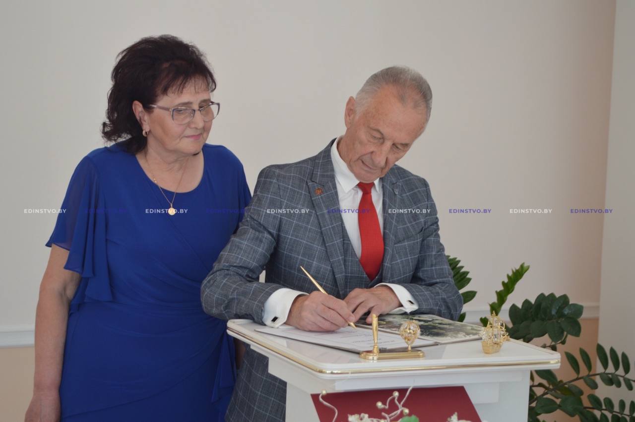 Прошло 50 лет с момента, когда они сказали друг другу «да» и стали мужем и женой. За это время поменялось многое, но одно осталось неизменным — любовь друг к другу. Сегодня, как и полвека назад, Сергей Васильевич и Людмила Владимировна поставили свои подписи в официальном документе — только уже в почетной книге отдела ЗАГС Борисовского райисполкома. А затем, как полагается, обменялись кольцами и станцевали вальс.