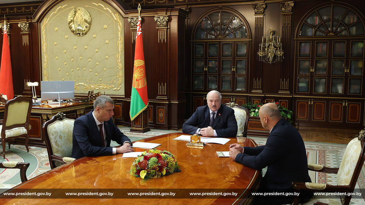 Президент Беларуси Александр Лукашенко 2 июля принял с докладом Главу Администрации Президента Дмитрия Крутого и Чрезвычайного и Полномочного Посла Беларуси в России Александра Рогожника.