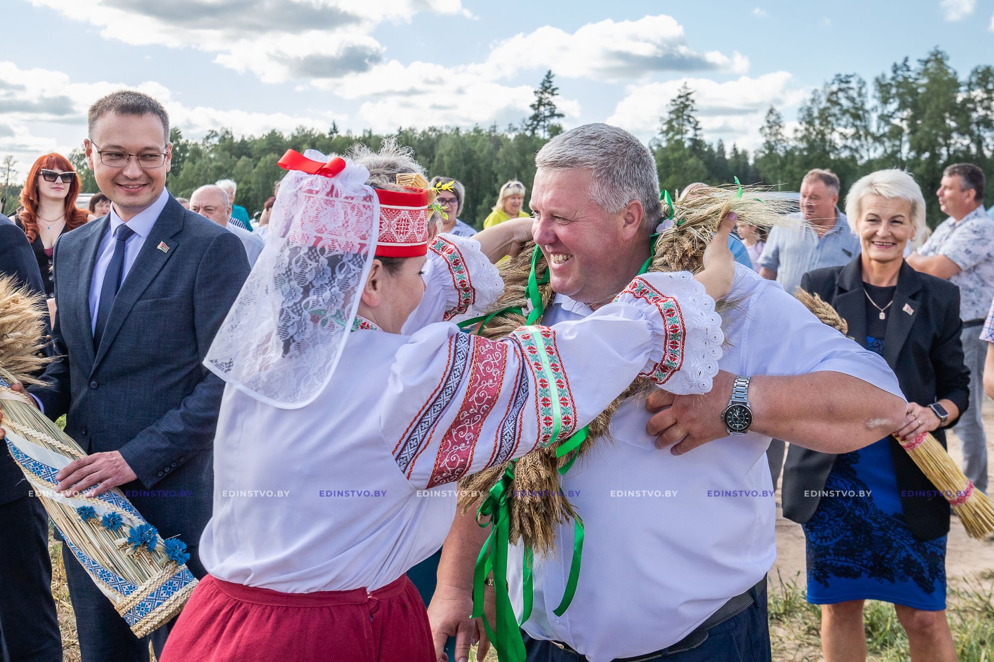 – Таварышы, воіны, якія пачынаюць бітву за ўраджай, – ад імя Барысаўскага раённага Савета дэпутатаў і выканаўчага камітэта звярнуўся да галоўных герояў уборачнай кампаніі камбайнераў Мікалай Швайбовіч, адзначыўшы, што добры ўраджай – гэта наша харчовая і нацыянальная бяспека. – Мы павінны памятаць, што нашы продкі не толькі асвятлялі першы сноп і прасілі благаславення, але і казалі «Божа, памажы, а сам не ляжы», «І да Божай дапамогі патрэбна снароўка чалавека», і галоўнае «Хто рана ўстае, таму Бог дае».
