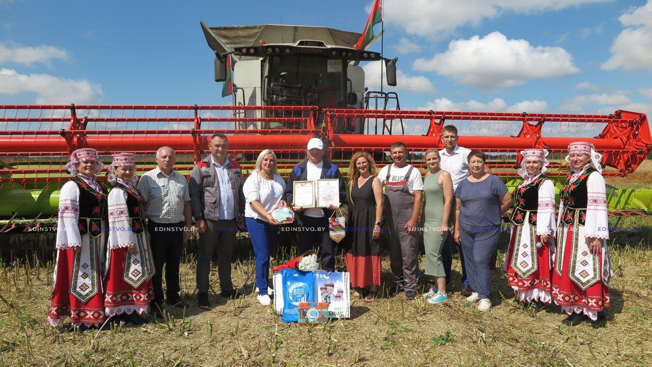 Поздравить передовиков с трудовой победой приехали начальник отдела идеологической работы и по делам молодежи райисполкома Татьяна Чуйкова, председатель райкома профсоюза работников АПК Антонина Котова и первый секретарь райкома БРСМ Александр Осипенко, представители райсельхозпрода и сельскохозяйственных предприятий, в которых работают комбайнеры.
