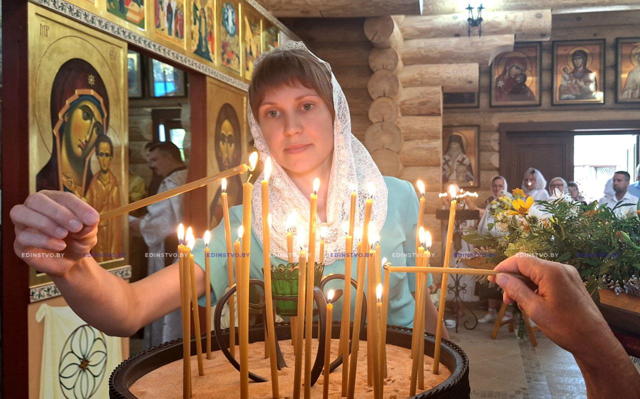 Первую Божественную литургию в новоосвященном храме возглавил епископ Борисвовский и Марьиногорский Амвросий. Он также совершил молебен в честь воспоминания Крещения Руси, обратился к присутствующим со словом назидания и приподал всем архипастырское благословение.