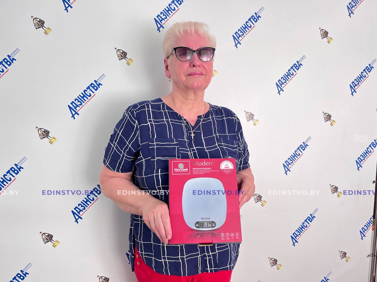 За призом в редакцию пришла еще одна победительница рекламной игры «Испытай удачу». Павлина Ковалева выиграла кухонные весы Rondell.