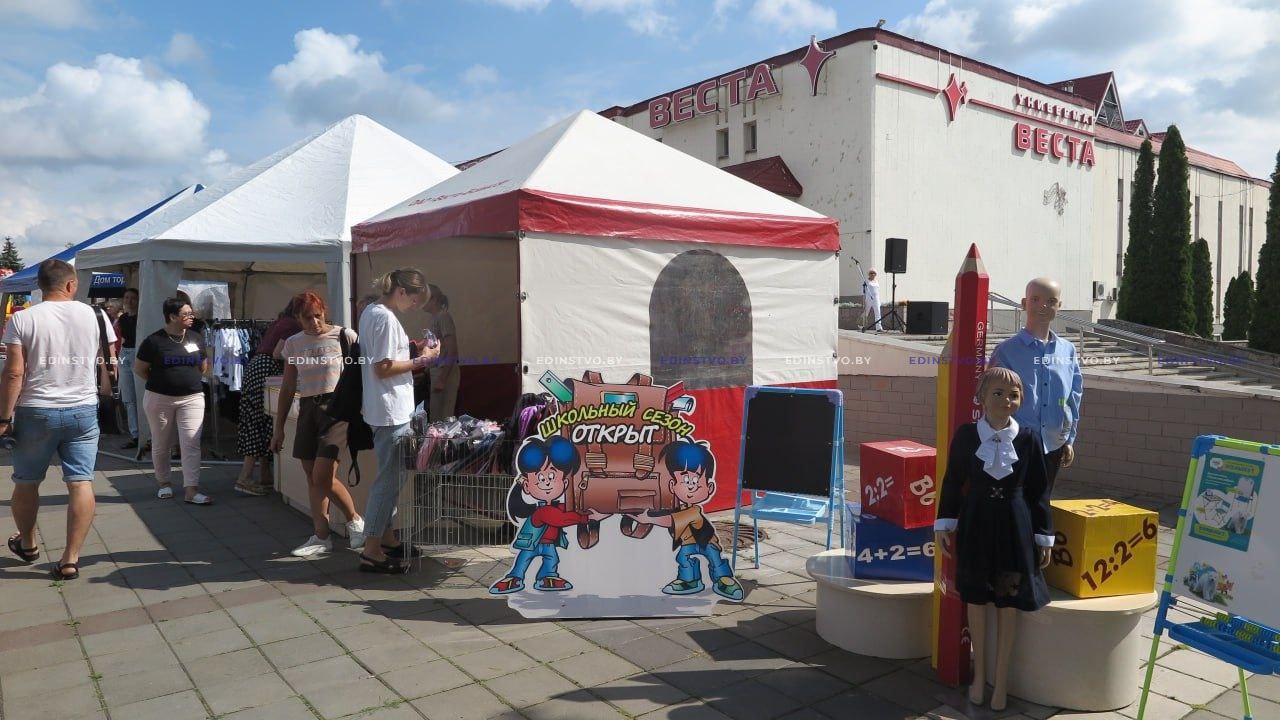 До Дня знаний осталось чуть больше трех недель, а значит, у торговли и родителей настала самая горячая пора. Чтобы не пришлось тратить много времени в поисках необходимого, для борисовчан была организована традиционная школьная ярмарка. Сегодня она развернулась на площадке у универмага «Веста». Здесь взрослых покупателей ждали приятные сюрпризы в виде скидок, а юных посетителей игры и подарки от волонтеров БРСМ.