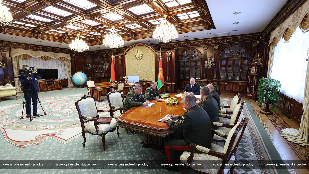 «После событий с этими беспилотниками мы усилили контроль на белорусско-украинской границе. Более того, мы вывели туда части нашей армии. Какова сейчас обстановка на границе, все ли подразделения выведены в район концентрации войск на непредвиденный случай? Материалы я получил, карта у меня соответствующая есть. Я прошу доложить не только обстановку, но и развитие ситуации, ваши предложения, что будем делать здесь дальше», — сказал Глава государства.