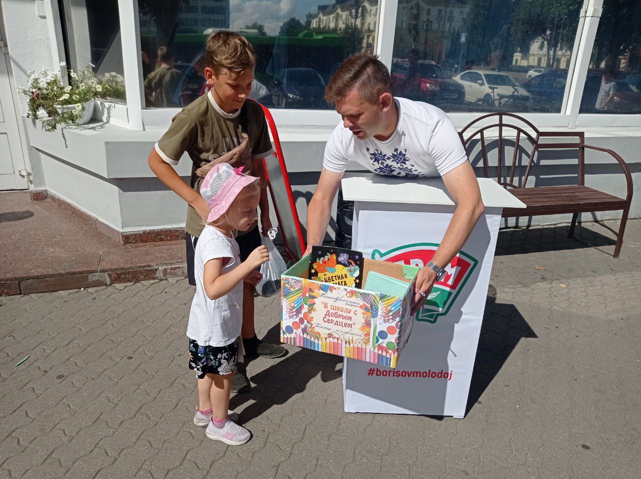 — Акция является традиционной. Все небезразличные граждане Борисовщины могут поучаствовать в ней и оказать помощь в подготовке к школе подрастающему поколению. Прежде всего речь идет о тех детях, которые оказались в тяжелой жизненной ситуации, сиротах, детей из приюта и Дома ребенка, — пояснил молодежный лидер района. — Благотворительность является важнейшим фактором понимания нашим населением того, что есть категории ребят, которым требуется помощь. И в том числе ее оказывают сверстники. Для меня самое трогательное, когда не только взрослые принимают участие в акции, но и сами дети, покупая наборы, тетради, карандаши, ручки, и передают их в организованных локациях, как к примеру на этой неделе у дома торговли «Веста-Борисов». К доброй акции присоединяется и руководства района, поддержал ее заместитель председателя райисполкома Егор Мандрик. Это дорогого стоит, это всегда ярко, красочно и массово. Волонтеры информируют всех прохожих о порядке участия, и тот, кто желает оказать помощь, опускает канцелярские принадлежности в специальную коробку, взамен получая воздушный шарик.