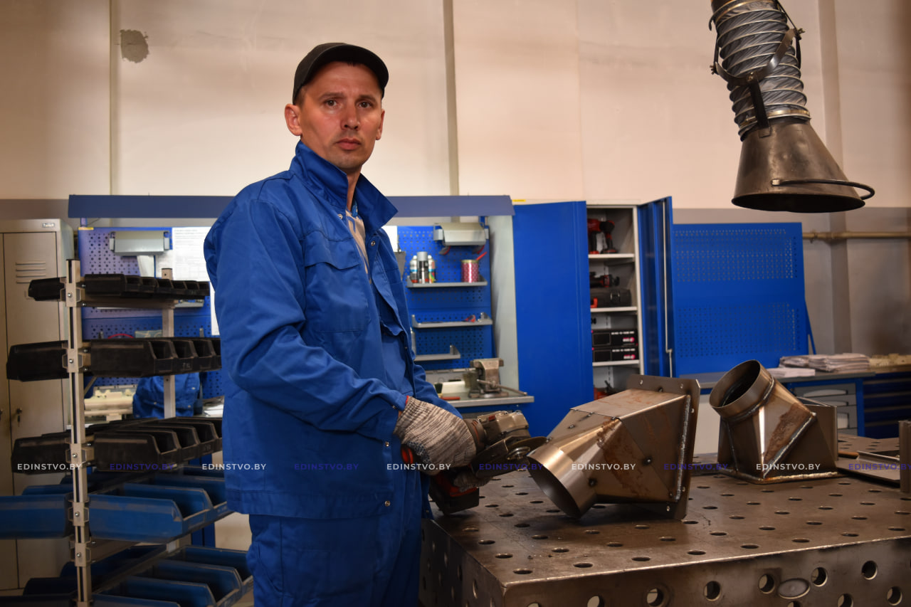 – Рабочий день начинается в 7 часов утра. В это время я уже нахожусь на месте, готовый к работе. Каждое утро начальник цеха с мастером совершают обход сборочного цеха и каждой бригады работников. Уточняют текущие задачи, дают новые задания или срочную работу. После распределения работ получаешь необходимые детали и, собственно, приступаешь к труду. В сборочном цеху происходит сборка металлоконструкций. В основном я собираю семяочистительную технику, она составляет наибольший объем моей работы, но иногда приходится иметь дело со сборкой иных конструкций и узлов оборудования. В целом моя работа заключается в сборке, сварке, зачистке деталей. После перечисленных манипуляций изделие передается в малярную группу, а затем попадает обратно ко мне, и я собираю все, создавая единое целое, – поясняет Сергей Иванович.