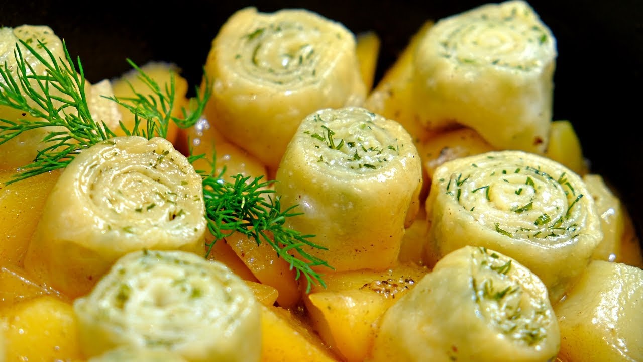 - Выкладываем нудли (штрудли) на картофель, они должны готовиться на пару.