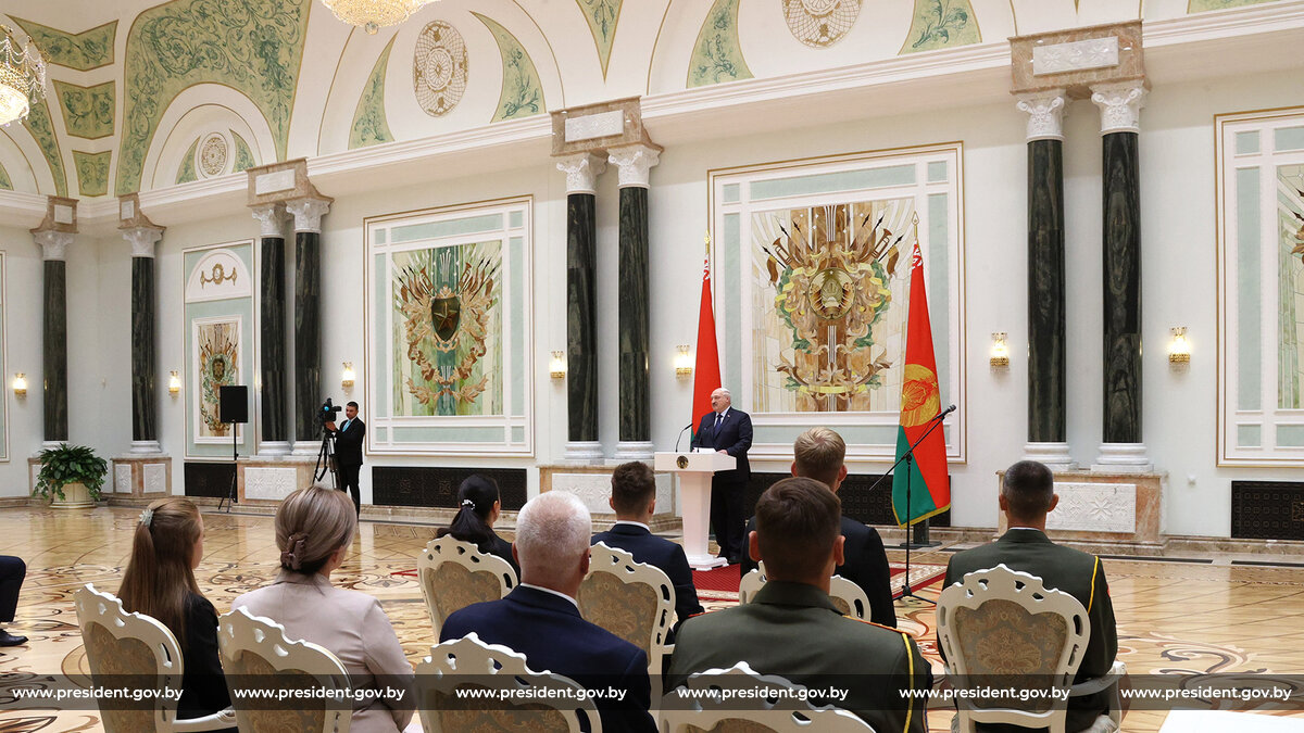 Президент Беларуси Александр Лукашенко начал День народного единства с церемонии вручения государственных наград во Дворце Независимости.