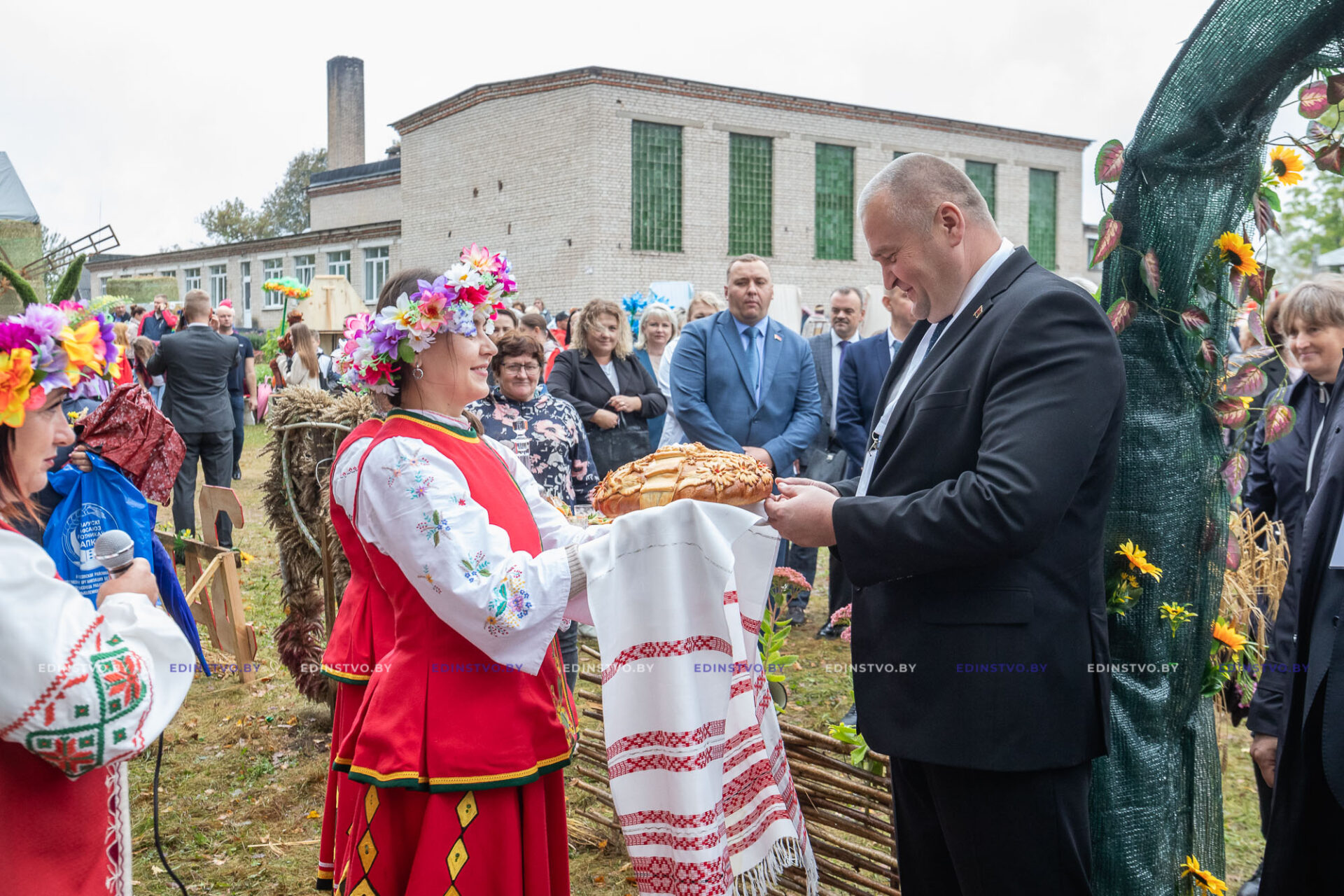 Душистым караваем на мероприятии приветствовали председателя райисполкома — ему вручили самый бесценный и святой хлеб из нового урожая, как символ удачного завершения жнива и процветания Борисовской земли, нашей страны.