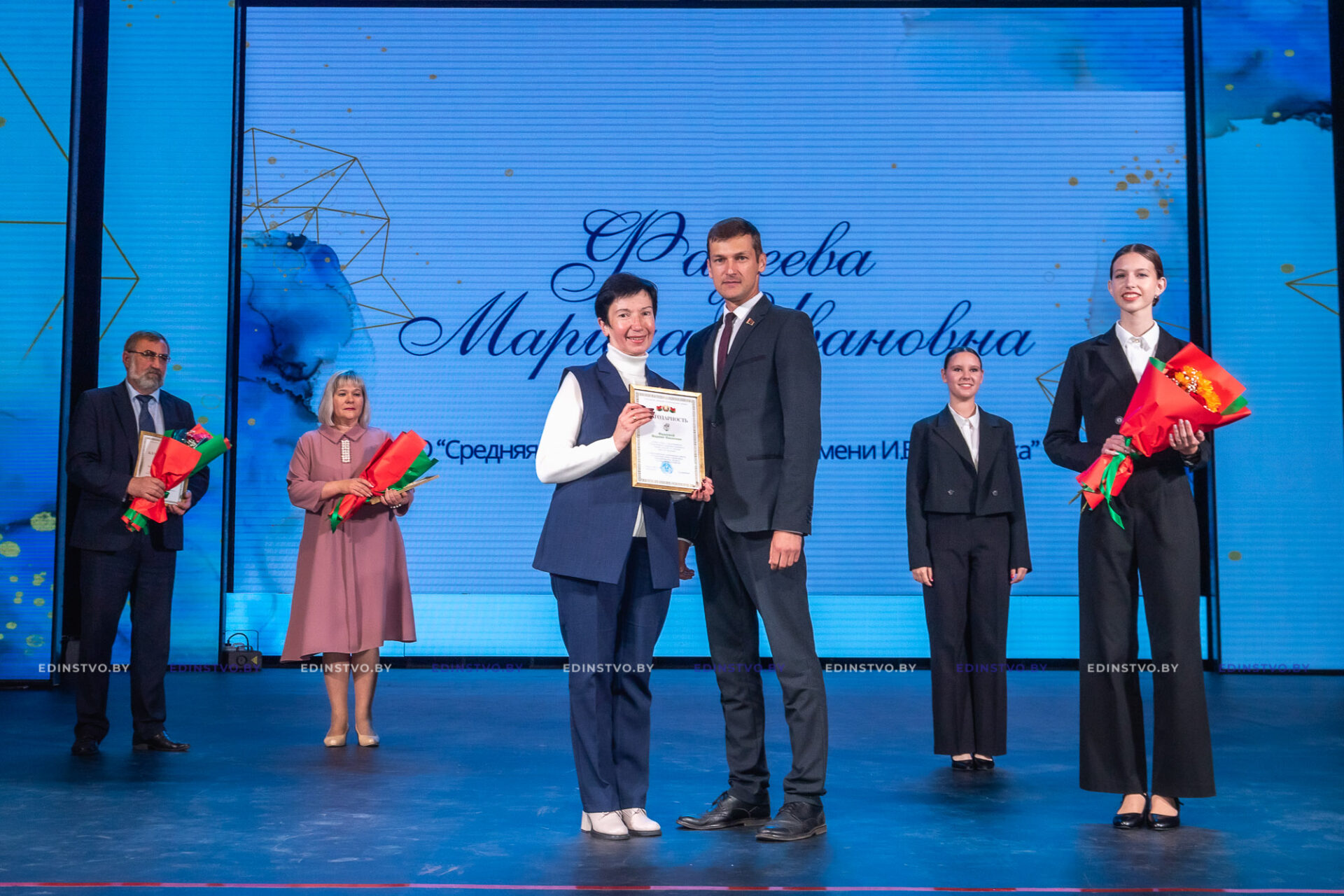 Егор Алексеевич вручил Благодарность председателя Борисовского райисполкома за многолетний добросовестный труд в системе образования, высокий профессионализм, плодотворную организационно-управленческую деятельность директору Мстижской средней школы Эдуарду Шелегову, за добросовестную плодотворную работу, достигнутые успехи в организации образовательного процесса, высокий профессионализм учителю начальных классов начальной школы №6 Елене Синельниковой, учителю истории средней школы №16 имени И.В. Борисюка Марине Фадеевой, за высокие показатели в труде, результативную профессиональную деятельность по обучению и воспитанию подрастающего поколения заместителю заведующего по основной деятельности детского сада №27 Людмиле Пыхтиной, за многолетний добросовестный труд в системе дошкольного образования, достигнутые успехи в обучении и воспитании подрастающего поколения воспитателю дошкольного образования детского сада №6 Инне Бухановской, за добросовестный труд в системе дошкольного образования, достигнутые успехи в обучении и воспитании подрастающего поколения воспитателю дошкольного образования детского сада №37 Дарье Гунько.