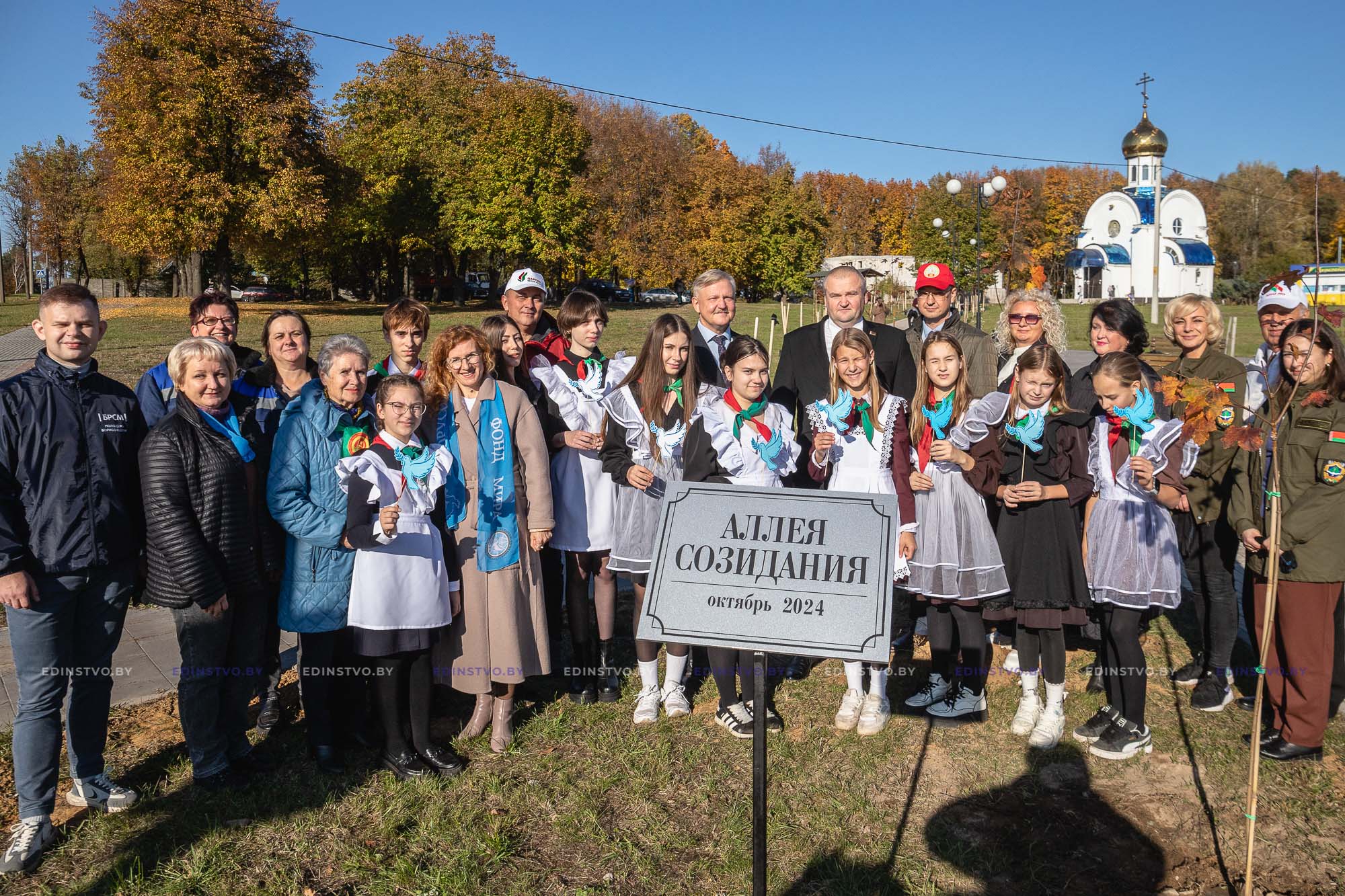 Сегодня руководство района во главе с председателем райисполкома Николаем Карповичем, депутат Палаты представителей Национального собрания Республики Беларусь Александр Шипуло, представители общественных объединений, политических партий, профсоюзный актив, совет ветеранов, работники районной инспекции природных ресурсов и охраны окружающей среды, а также пионеры гимназии №3 г. Борисова высадили кленовую Аллею созидания у Храма Святой Живоначальной Троицы.