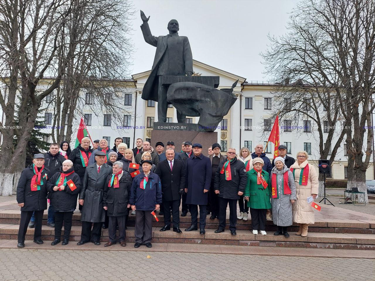 У памятника вождю мирового пролетариата в аг. Старо-Борисов, который был ранее отреставрирован благодаря инициативе и активному участию членов районной организации КПБ, собрались местные жители, коммунисты и учащиеся Борисовского кадетского училища Минской области.