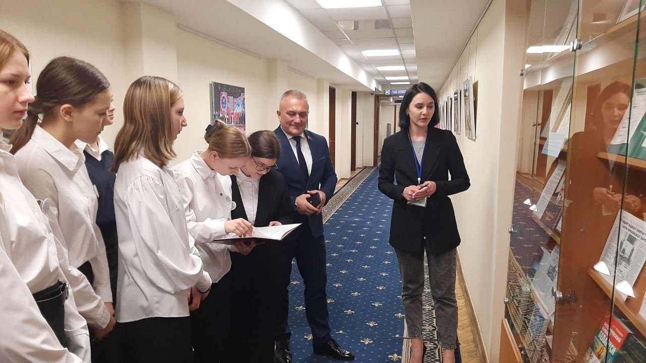 Пребывание в Палате представителей началось с экскурсии по постоянно действующей экспозиции музея истории Верховного Совета БССР и парламента. Ребята познакомились с историей становления и развития парламентаризма в Беларуси, основными направлениями в работе депутатского корпуса.