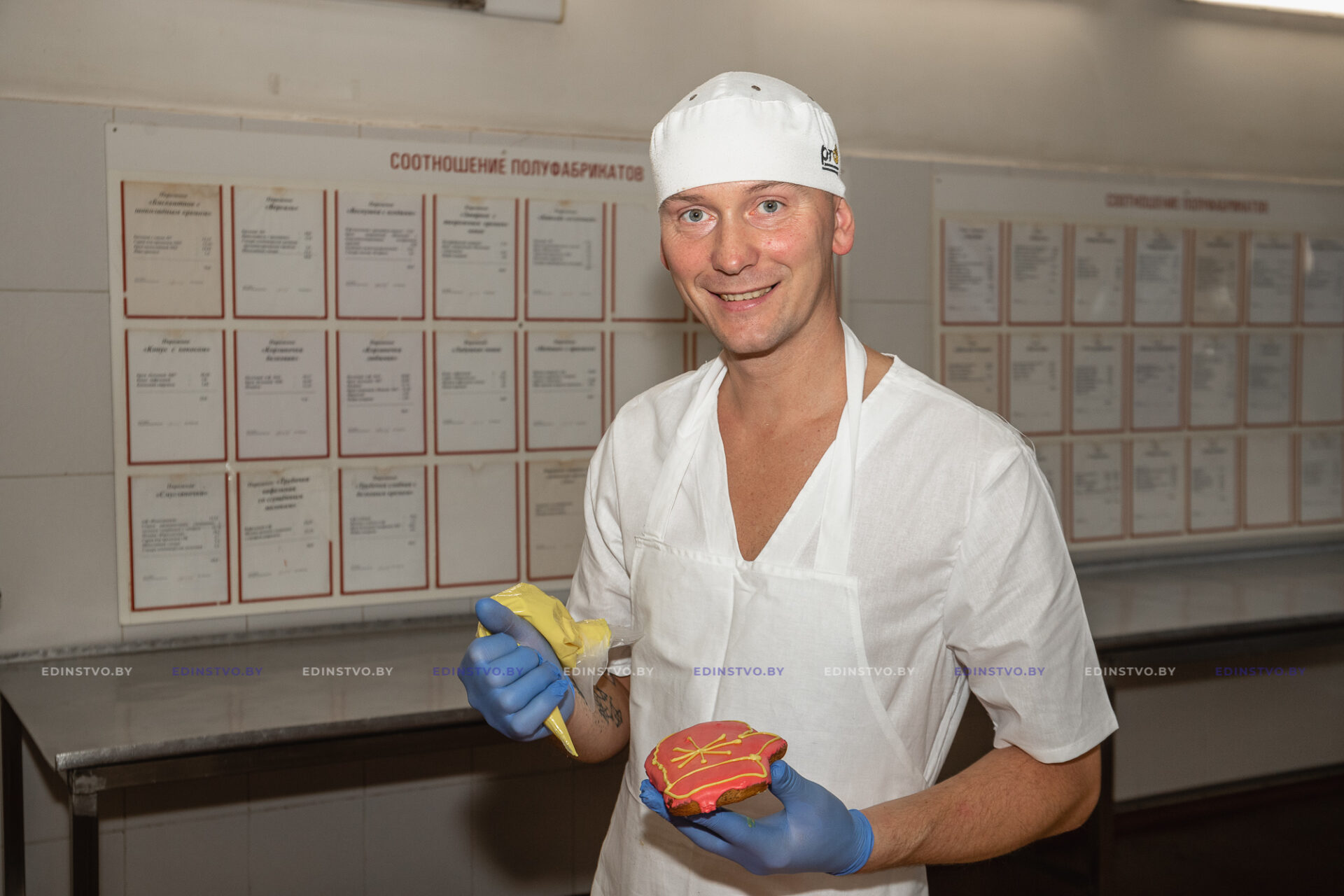 – В столовой мне посчастливилось работать под руководством опытного наставника. Он щедро делился тонкостями профессии, объяснял нюансы и помогал находить выход из сложных ситуаций, исправлять ошибки. Ему я безмерно благодарен за помощь и поддержку. Однако год спустя я понял, что душа лежит к другому, и перешел в ОАО «Борисовхлебпром». Во время работы на предприятии заочно обучался в Борисовском государственном колледже, где впоследствии получил квалификацию «техник-технолог, мастер производственного обучения». Вот уже 15 лет я тружусь на заводе, занимаясь выпечкой и декорированием кондитерских изделий, – делится мастер.
