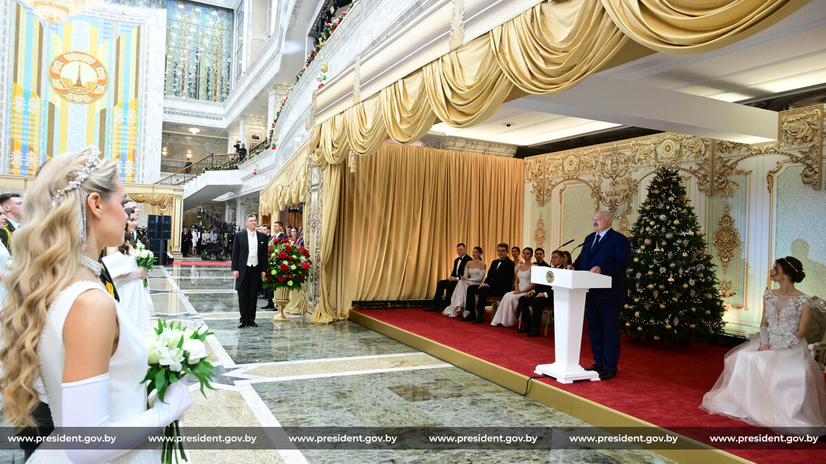 «Сегодня в наш Дворец Независимости пришел яркий, красивый праздник. Вдохновляющий праздник. Праздник, главным украшением которого являетесь вы, наши дорогие участники Новогоднего бала, — сказал Глава государства. — Для меня очень важно, чтобы вы почувствовали этот праздник, чтобы прониклись особой атмосферой Дворца — символа нашей независимости. Посмотрели на Минск из его окон, на своем примере увидели, что родная Беларусь — это страна возможностей».