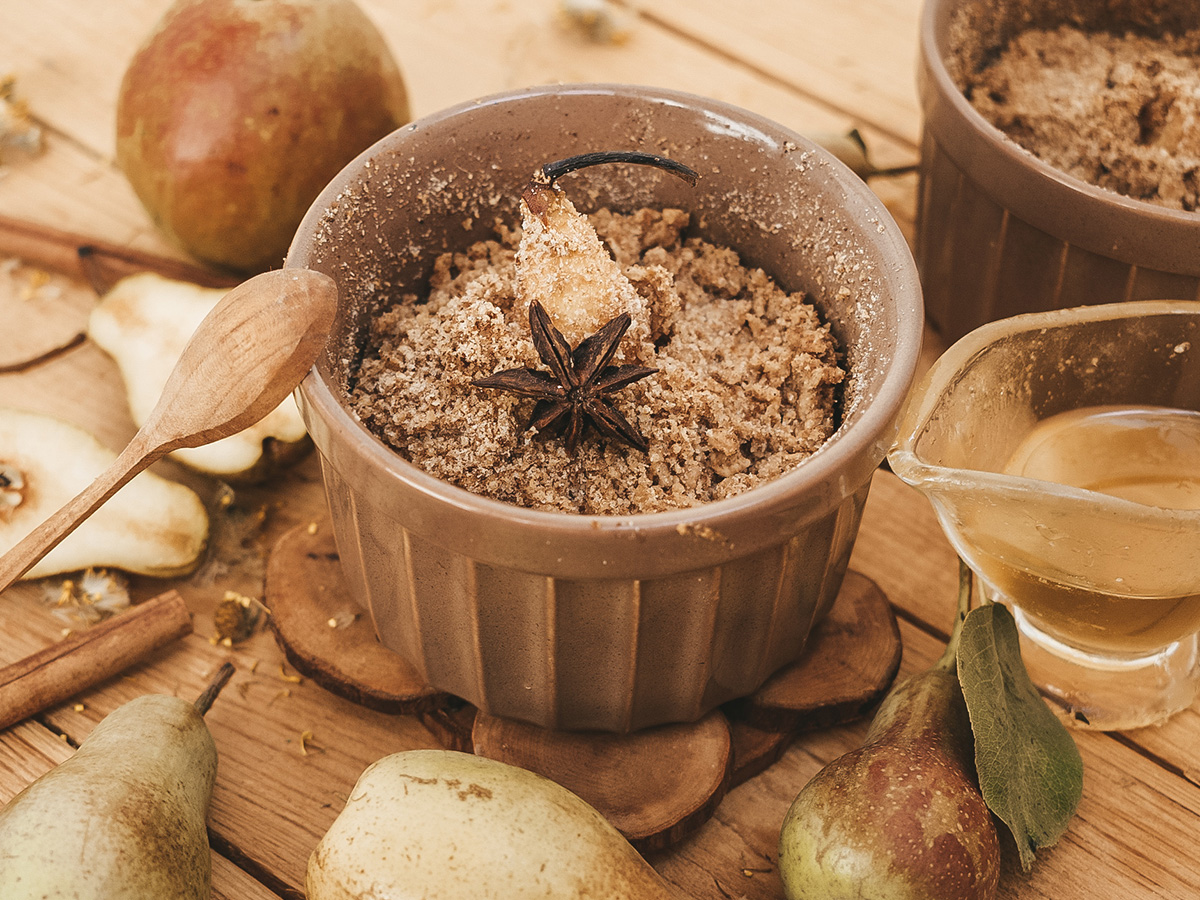 Крамбл — английский десерт, состоящий из фруктовой или ягодной основы, запечённой под песочной крошкой. Попробуйте его вариант — крамбл с грушами.