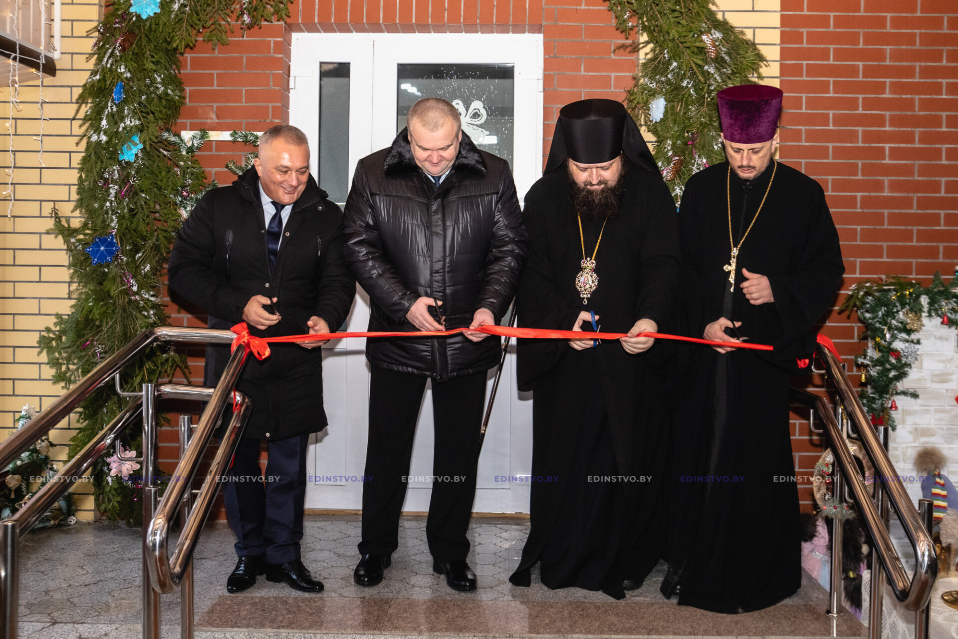 В торжественной обстановке владыка Амвросий, Николай Карпович и Руслан Косыгин перерезали символическую красную ленту у входа в приходский дом, а Александр Вербило провел экскурсию и рассказал о деятельности, которая сейчас ведется в нем.