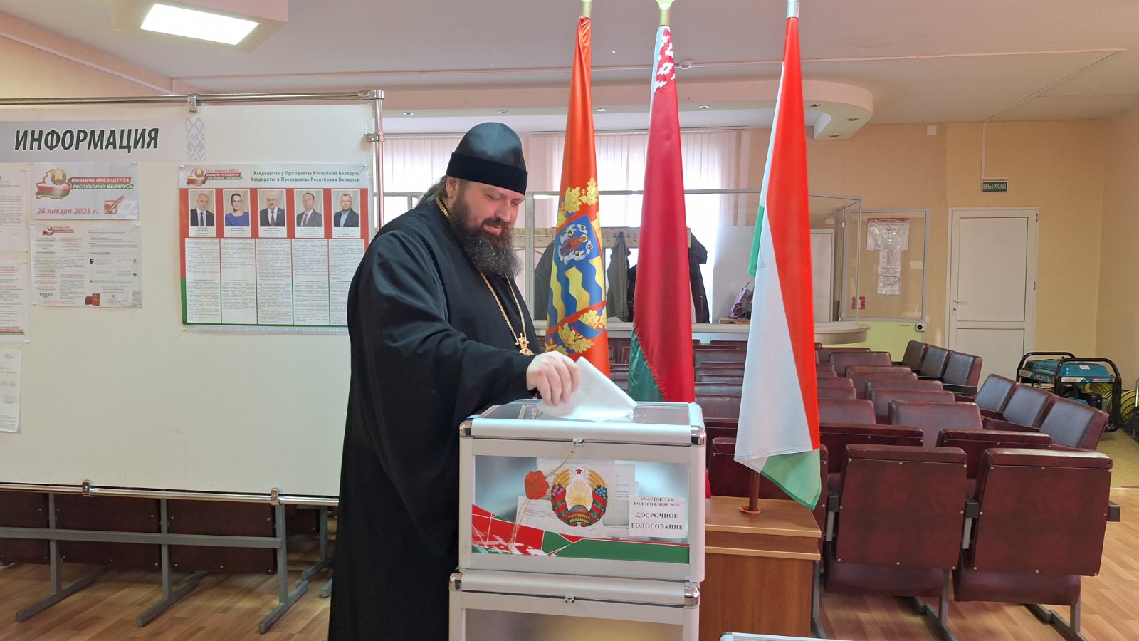 Среди тех, кто пришел на участок по выборам — епископ Борисовский и Марьиногорский Амвросий.