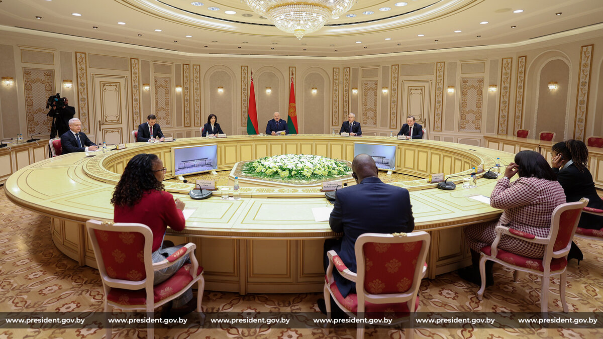 «Хотел бы услышать ваши впечатления от посещения Беларуси, пожелания и предложения о сотрудничестве в конкретных областях. Очень важно наладить нам с вами тесное сотрудничество. Это было бы хорошим итогом вашего пребывания в Беларуси и сигналом для руководства ваших стран, да и других стран Африки», — заявил белорусский лидер.