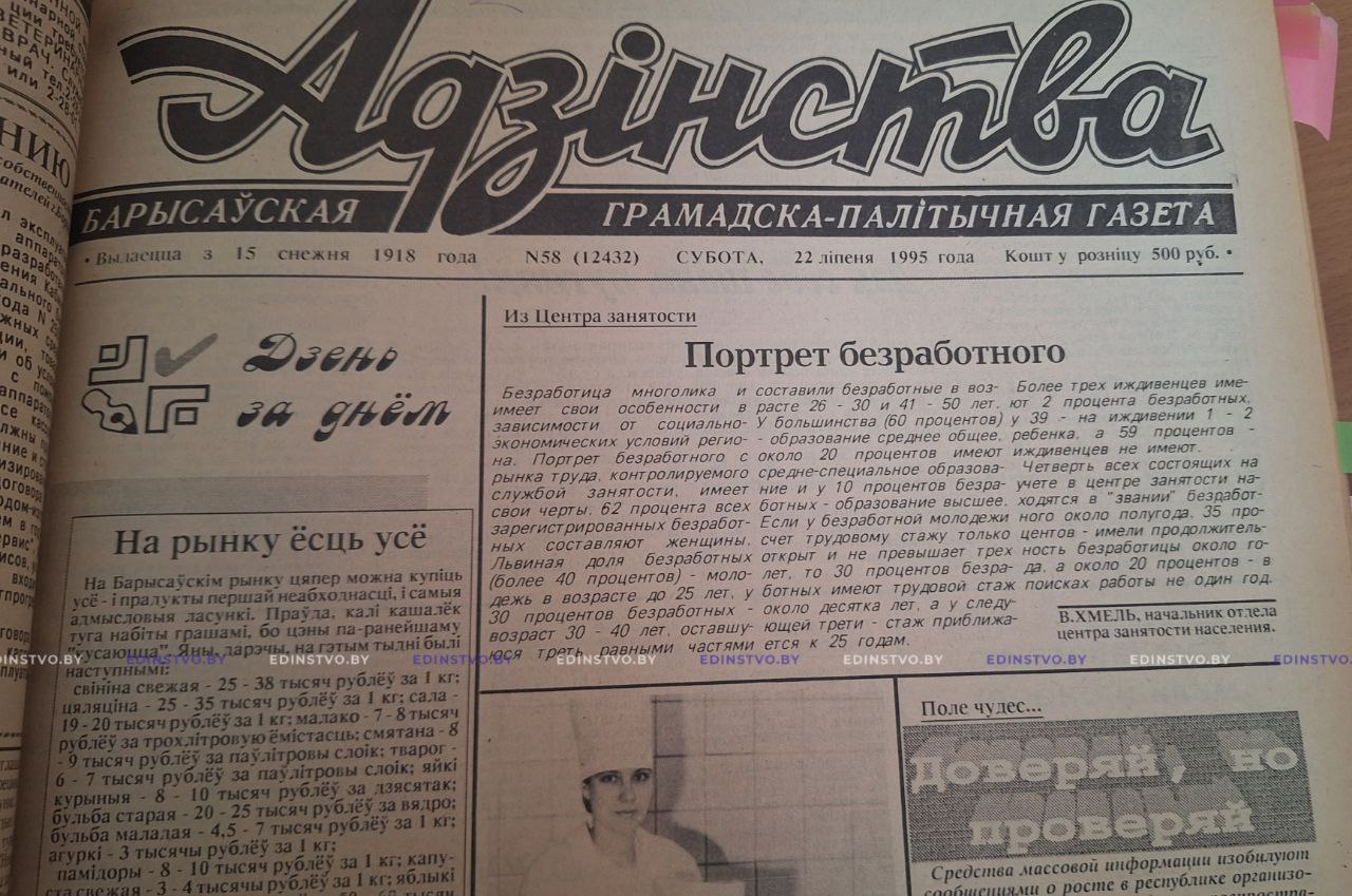 «На Барысаўскім рынку цяпер можна купіць усё — і прадукты першай неабходнасці, і адмысловыя ласункі», — рассказывают журналисты в номере от 22 июля 1995 года.