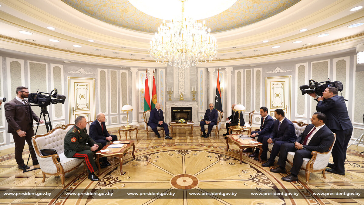 «Господин Хафтар, прошу считать, что вы приехали к своим друзьям, к себе домой. Много о вас читал, много слышал, много рассказывали мне. Но, к сожалению, встречаюсь впервые. Я хочу, чтобы вы знали, что мы очень хорошо осведомлены о ситуации в Ливии, очень хорошо знаем Ливию. У меня к вашему народу особое отношение, я бывал в Ливии в свое время. Конечно, сегодня это другая Ливия. Но вы должны знать, что мы готовы сделать для вас все, что вы увидите полезного в Беларуси», — сказал Глава государства.