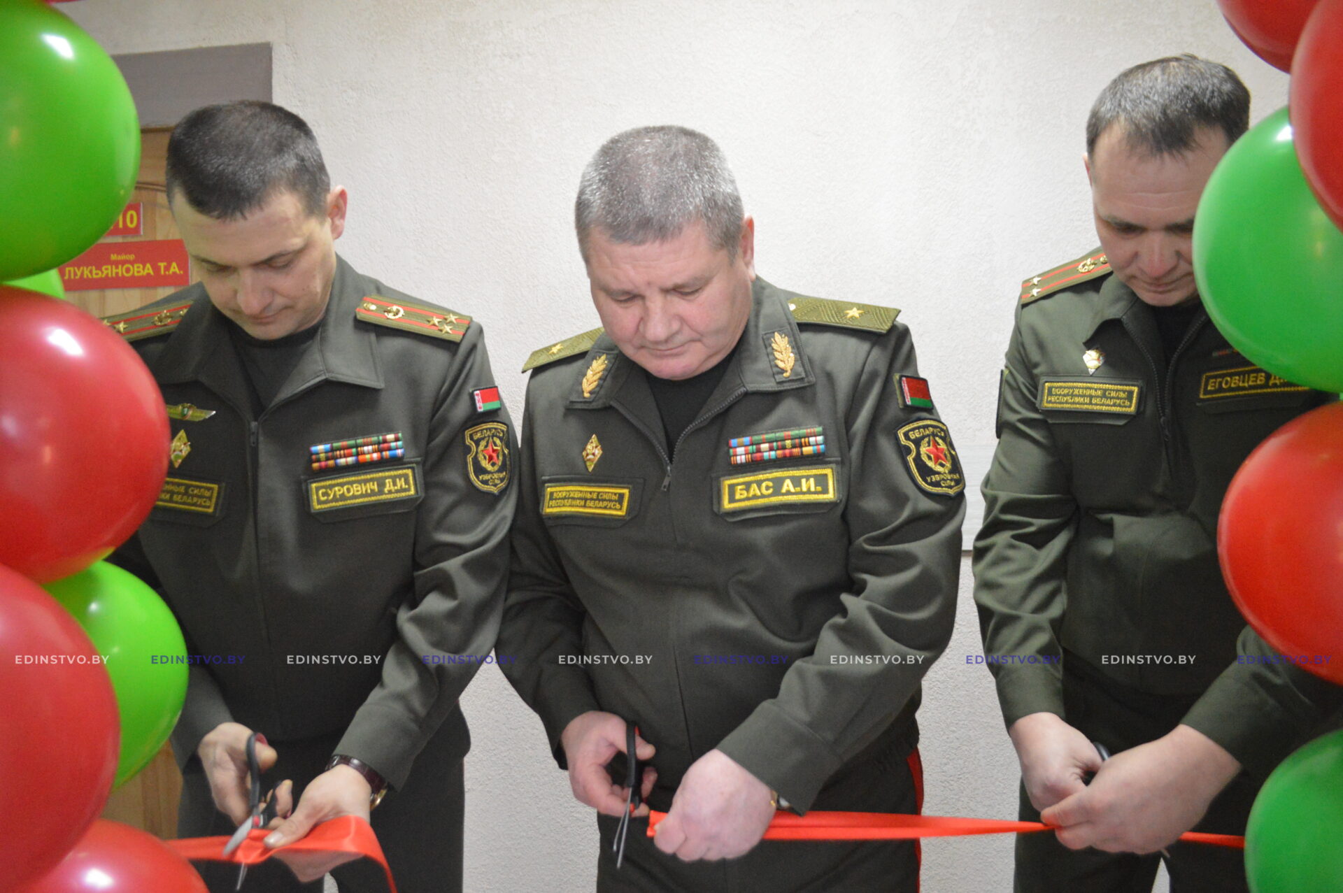 Право перерезать красную ленту в честь открытия комнаты боевой славы было предоставлено генерал-майору Александру Басу, полковнику Дмитрию Суровичу и командиру воинской части (центра) технического обеспечения подполковнику Дмитрию Еговцеву. После чего командующий войсками СЗОК вручил символический ключ командиру воинской части.