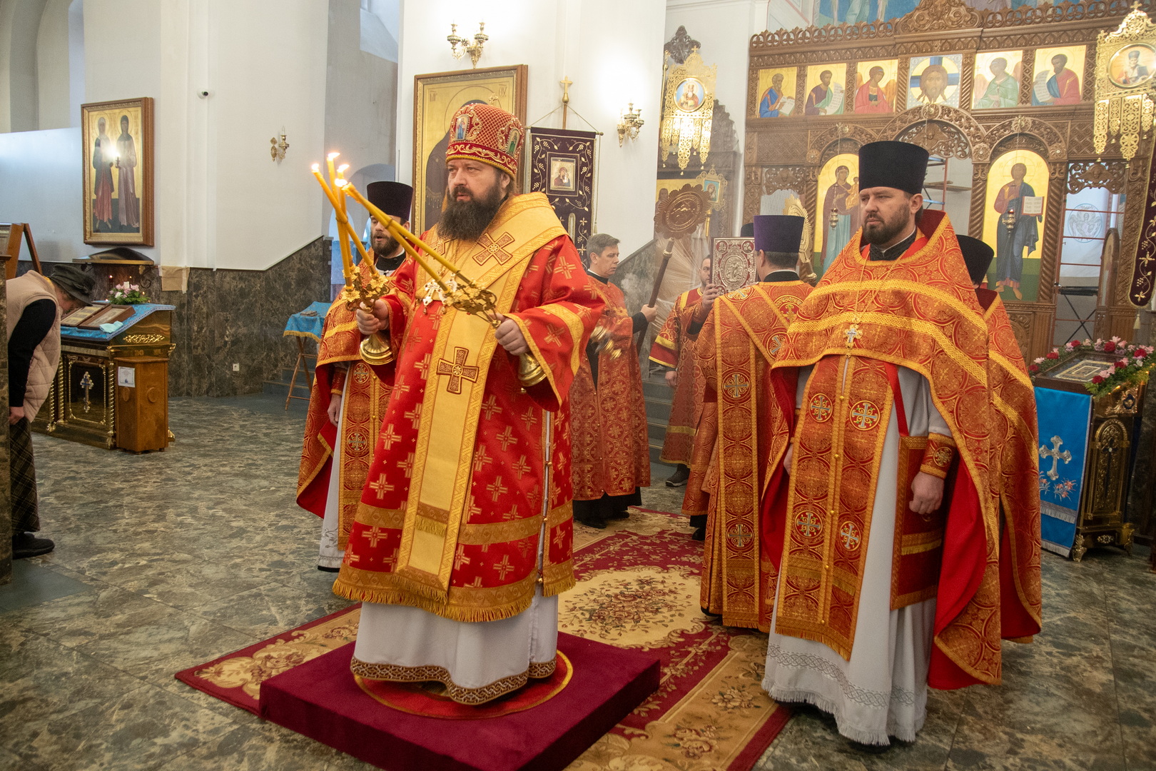 Архипастырю сослужили: ключарь кафедрального собора Воскресения Христова г. Борисова протоиерей Павел Яцукович, духовенство кафедрального собора.