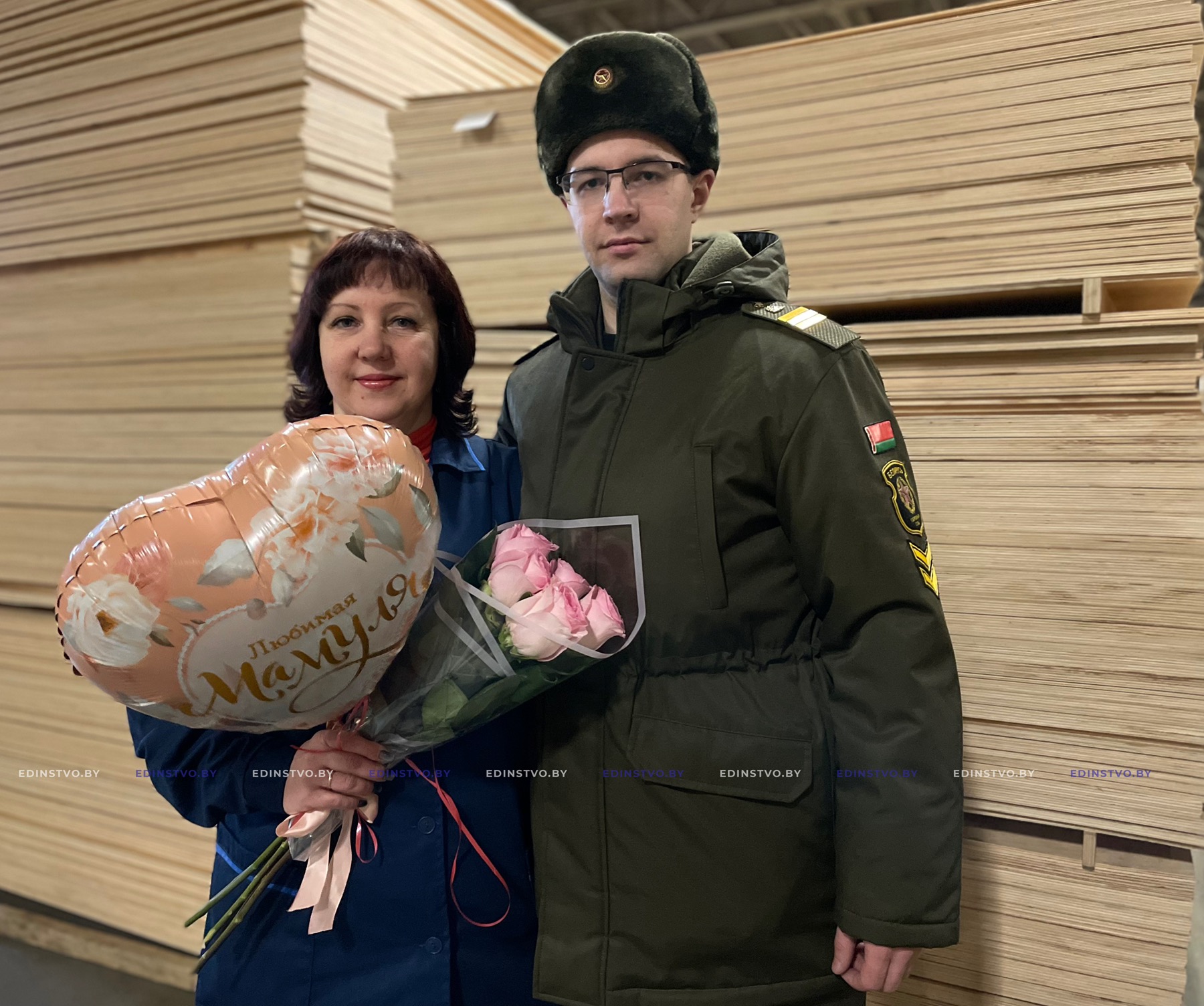 Перед праздником парень загорелся идеей устроить сюрприз для любимой мамы. И сегодня, с разрешения и поддержки командования, парень приехал лично поздравить ее с наступающим праздником. Такую интересную инициативу поддержали и на предприятии, где она работает мастером фанерного цеха готовой продукции – ОАО «Борисовдрев».