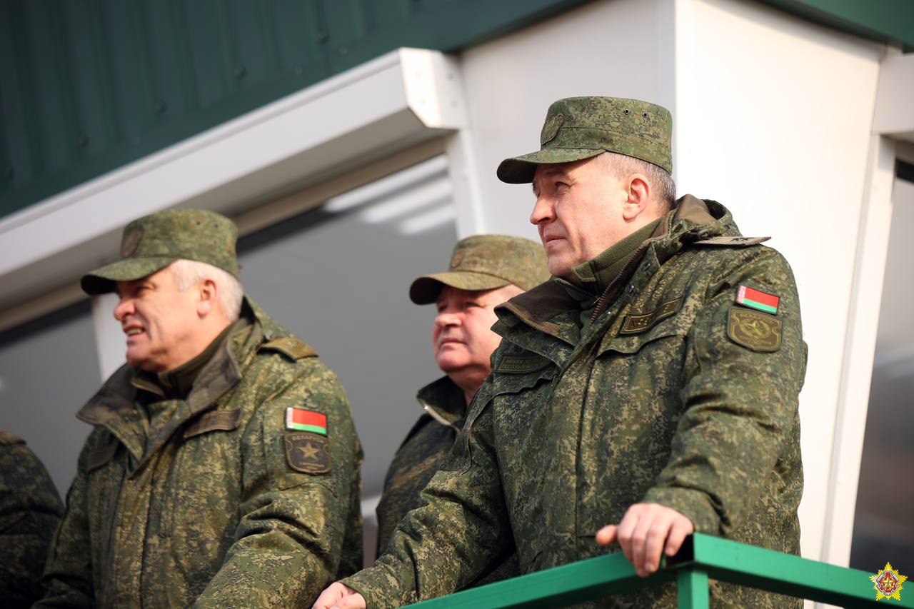 За розыгрышем тактического эпизода наблюдает Министр обороны Беларуси генерал-лейтенант Виктор Хренин.