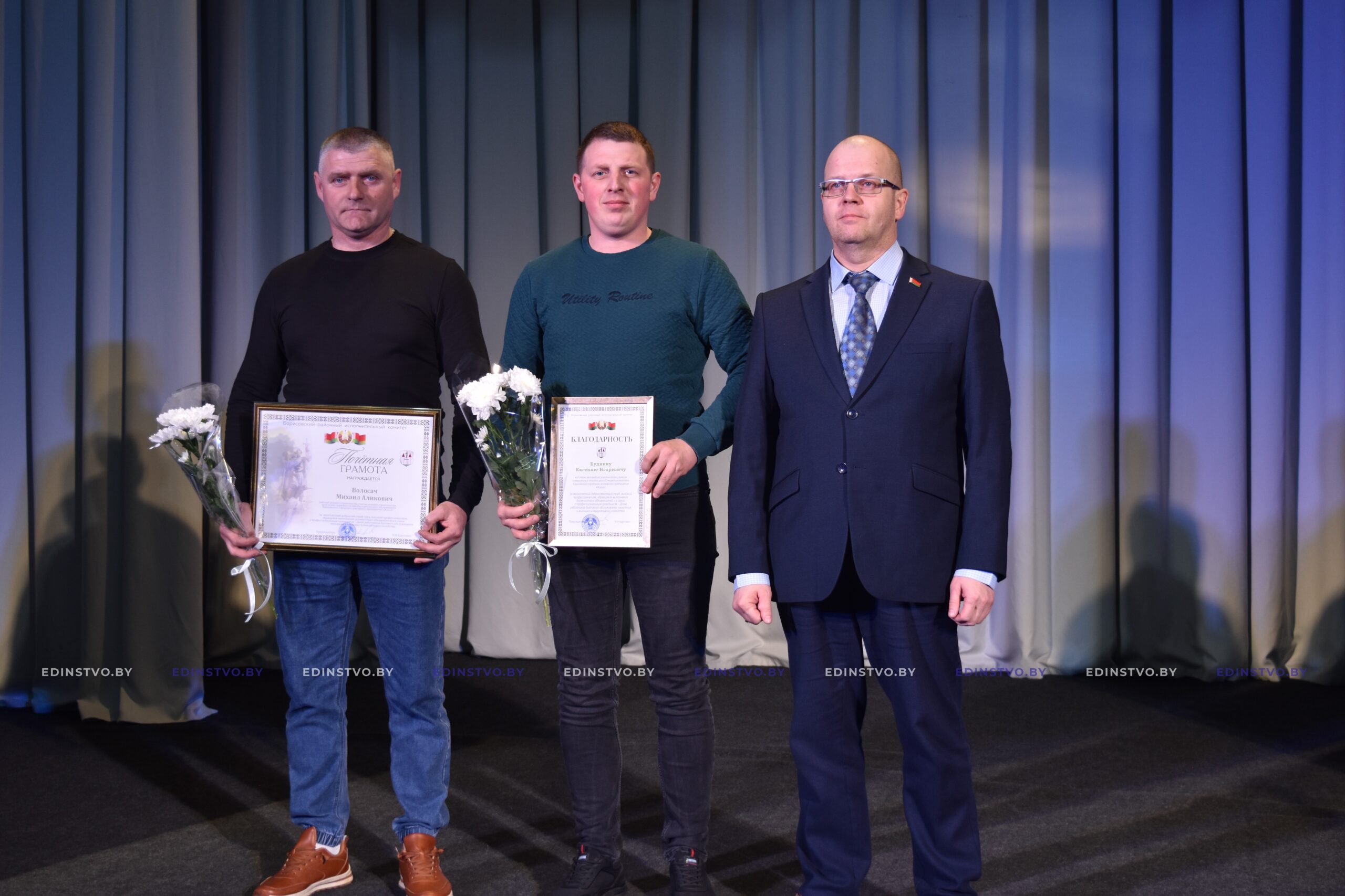 Почетной грамотой Борисовского районного исполнительного комитета награжден рабочий зеленого строительства цеха зелено-паркового хозяйства и ритуального обслуживания Михаил Волосач, а благодарность Борисовского районного исполнительного комитета вручена водителю автомобиля участка сбора и вывоза коммунальных отходов цеха «Спецавтохозяйство» Евгению Буднику.
