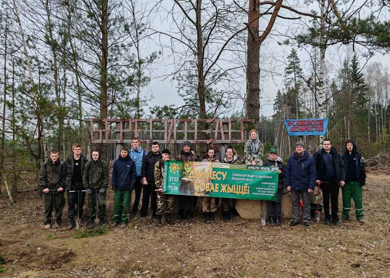 Студенты группы 30-3т отделения Лесного хозяйства Борисовского государственного колледжа вместе со своим преподавателем Сергеем Силюком высадили новые культуры в Кищино-Слободском лесничестве, в 25 квартале, выдел 29, общей площадью 1,5 гектара.