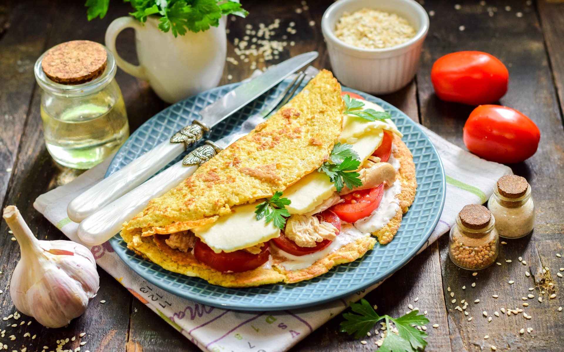- Выложить кусочки сыра на одну половинку овсяноблина и накрыть второй половинкой с помощью лопатки. Выключить огонь.
