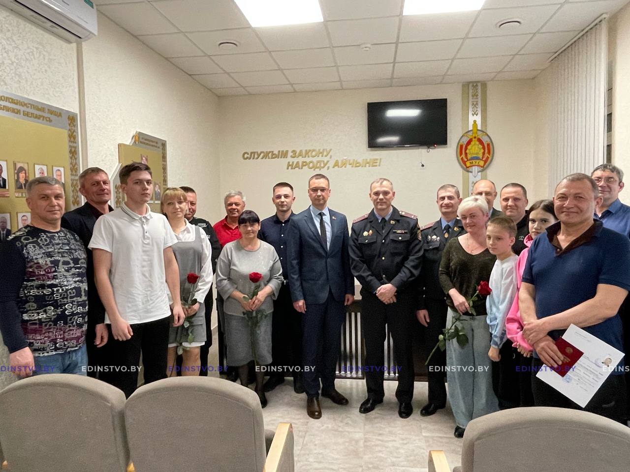 Сегодня в Загородном отделе милиции Борисовского РУВД состоялась торжественная церемония принесения присяги гражданина Беларуси. Знаковый ритуал прошли уроженцы Украины, Узбекистана и Казахстана. Когда-то они сделали выбор в пользу жизни в мирной стране, жители которой получают все необходимое для труда, отдыха, развития себя и своих детей. А сегодня стали полноправными гражданами нашего государства. Поздравить с важным событием их пришли первый заместитель председателя Борисовского райисполкома Николай Швайбович и представители милиции.