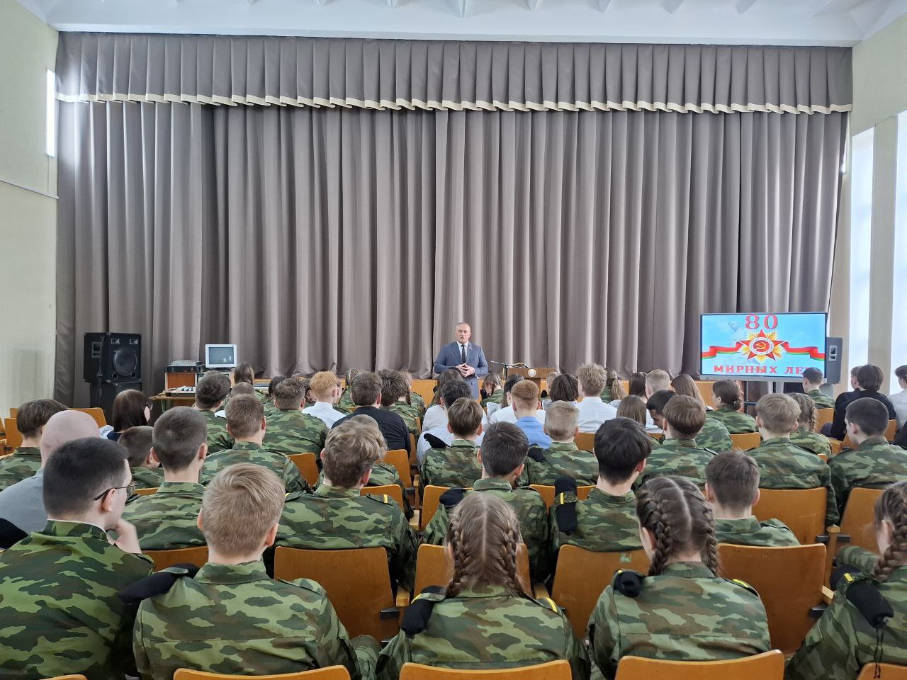 Также провёл диалоговую площадку с учащимися старших классов, посвященную 80-летию Великой Победы.