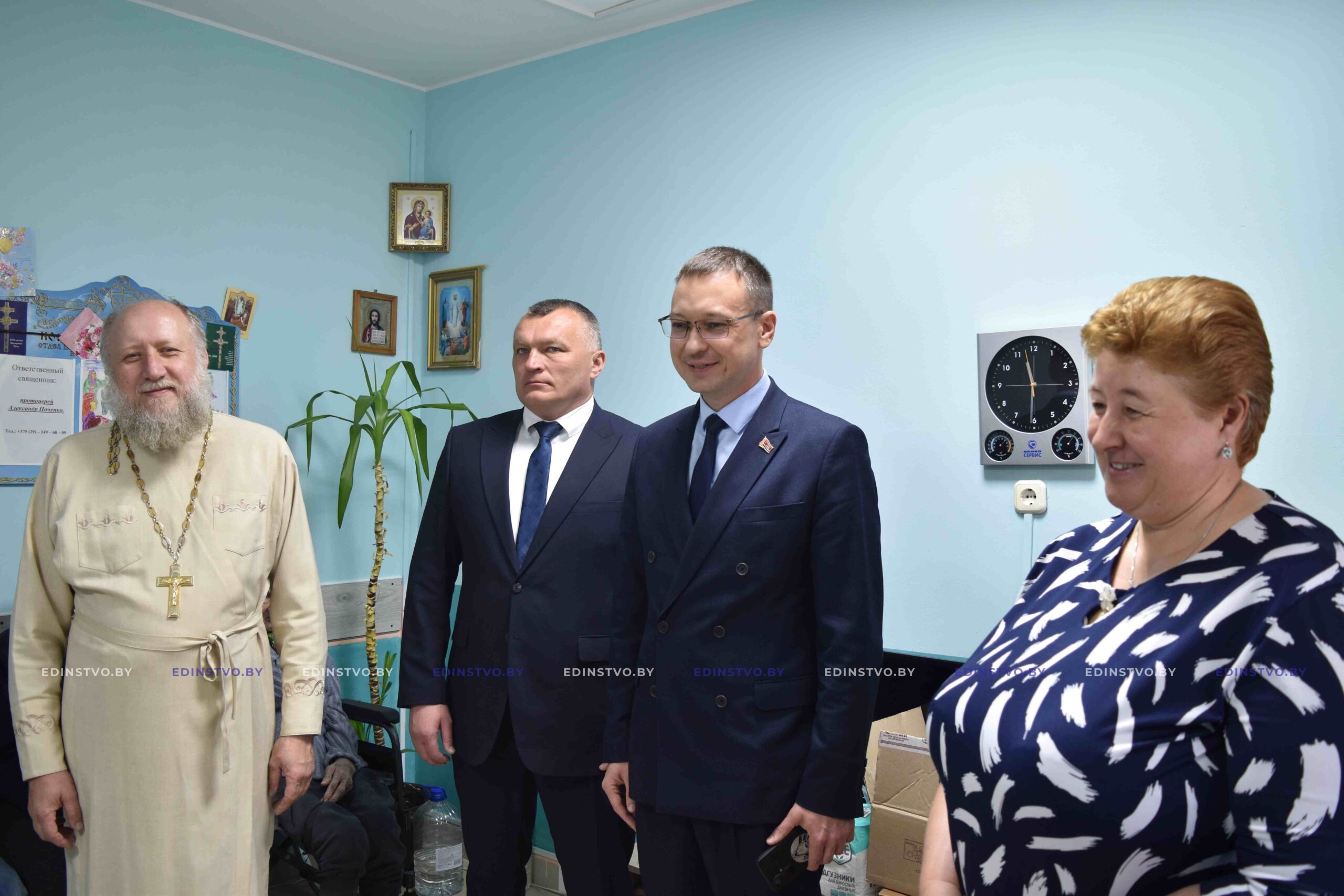 В рамках благотворительной акции «Подари радость ближнему» первый заместитель председателя Борисовского райисполкома Николай Швайбович, руководитель по церковной благотворительности и социальному служению Борисовской епархии, благочинный Борисовского районного церковного округа, настоятель храма святого Архангела Михаила аг. Лошница иерей Александр Лукьянович и заместитель генерального директора по идеологической работе БЗМП Александр Ржеутский посетили отделение круглосуточного пребывания для граждан пожилого возраста и инвалидов в аг. Забашевичи, чтобы поздравить постояльцев с Пасхой.