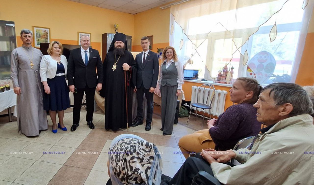 Сегодня в гостях у подопечных государственного учреждения «Борисовский социальный пансионат «Юзефово» побывали председатель Борисовского райисполкома Николай Карпович, епископ Борисовский и Марьиногорский Амвросий, заместитель председателя райисполкома Егор Мандрик, начальник отдела идеологической работы и по делам молодежи райисполкома Татьяна Чуйкова, секретарь Борисовского епархиального управления, настоятель храма Рождества Христова г. Борисова протоиерей Александр Вербило.