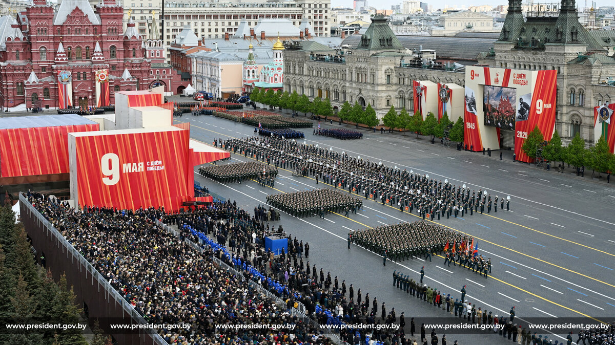 Парадным расчетом по московской брусчатке прошли представители вооруженных формирований стран СНГ и армий из других дружественных государств. Александр Лукашенко стоя приветствовал белорусских военнослужащих.
