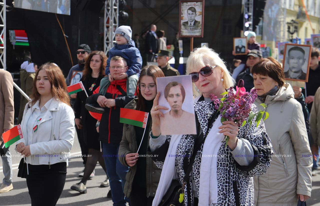 Праздничное шествие нарядно украшенной колонны, в которой выстроились сотни борисовчан, отправилось к Центральной площади. Наследников Победы объединила республиканская акция «Беларусь помнит». Отрадно, что жители Борисовщины сохраняют память о своих родных, которые подарили всем нам мирное будущее.