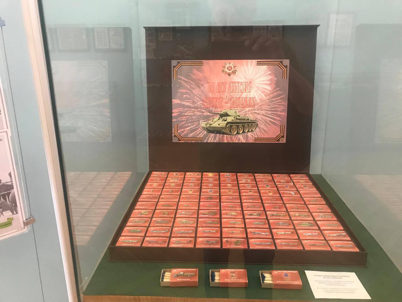 На выставке также продемонстрированы спичечные коробки, выпущенные ОАО «Борисовдрев» к 70-летию Победы.