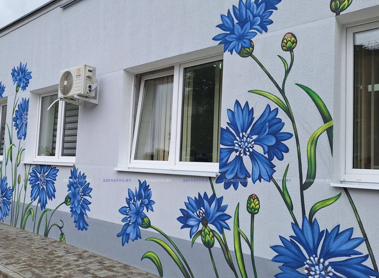 Этим летом васильки «расцвели»… На стенах административного здания Борисовского родильного дома.