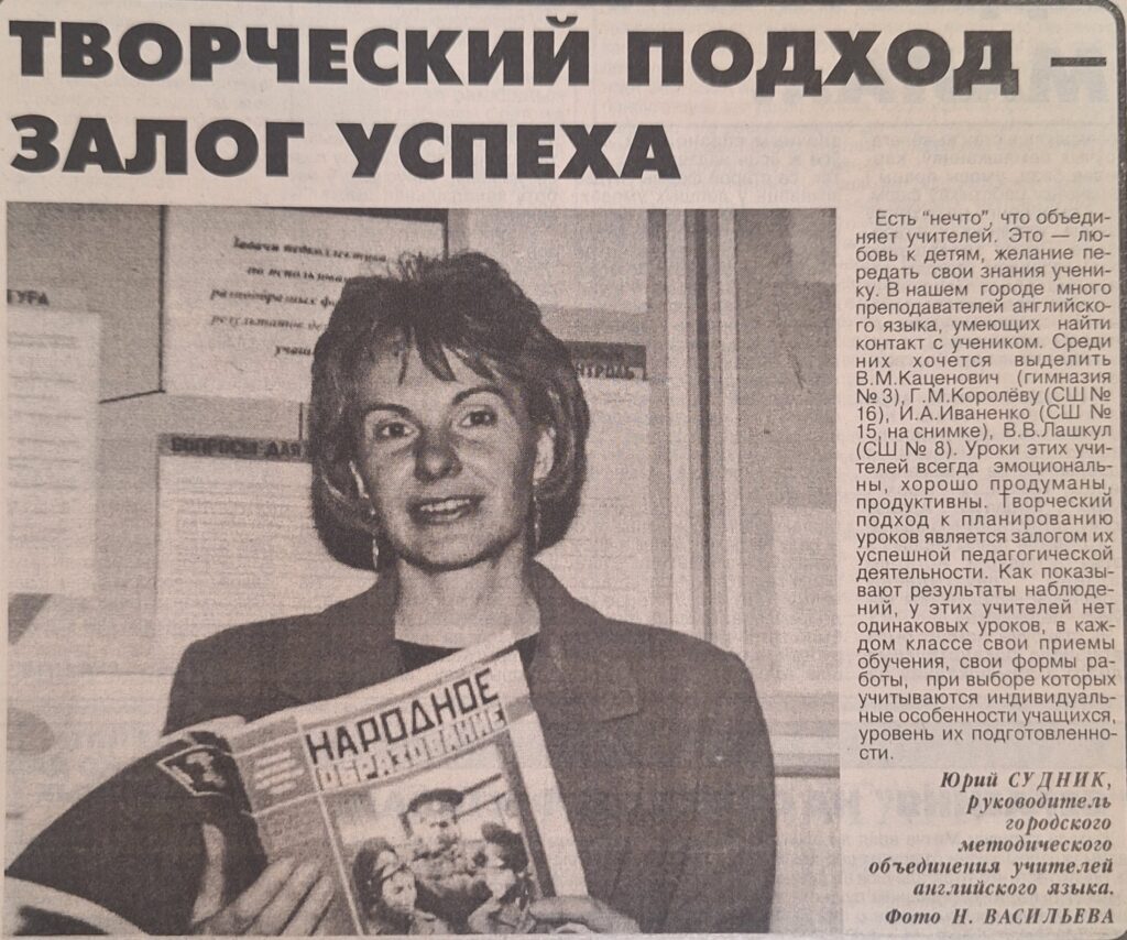 На страницах районки, и районные и городские педагоги делились опытом, рассказывали о своих успехах и достижениях воспитанников. И те, и другие участвовали в самодеятельности и КВН, вместе с детьми участвовали в уборке урожая, тогда еще была такая практика помощи колхозам и совхозам, проводили спортивные, патриотические мероприятия, различные открытые уроки, делились методическими разработками. Отдела-то, конечно, два, но дело обучения и воспитания подрастающего поколения — общее. Делить было нечего.