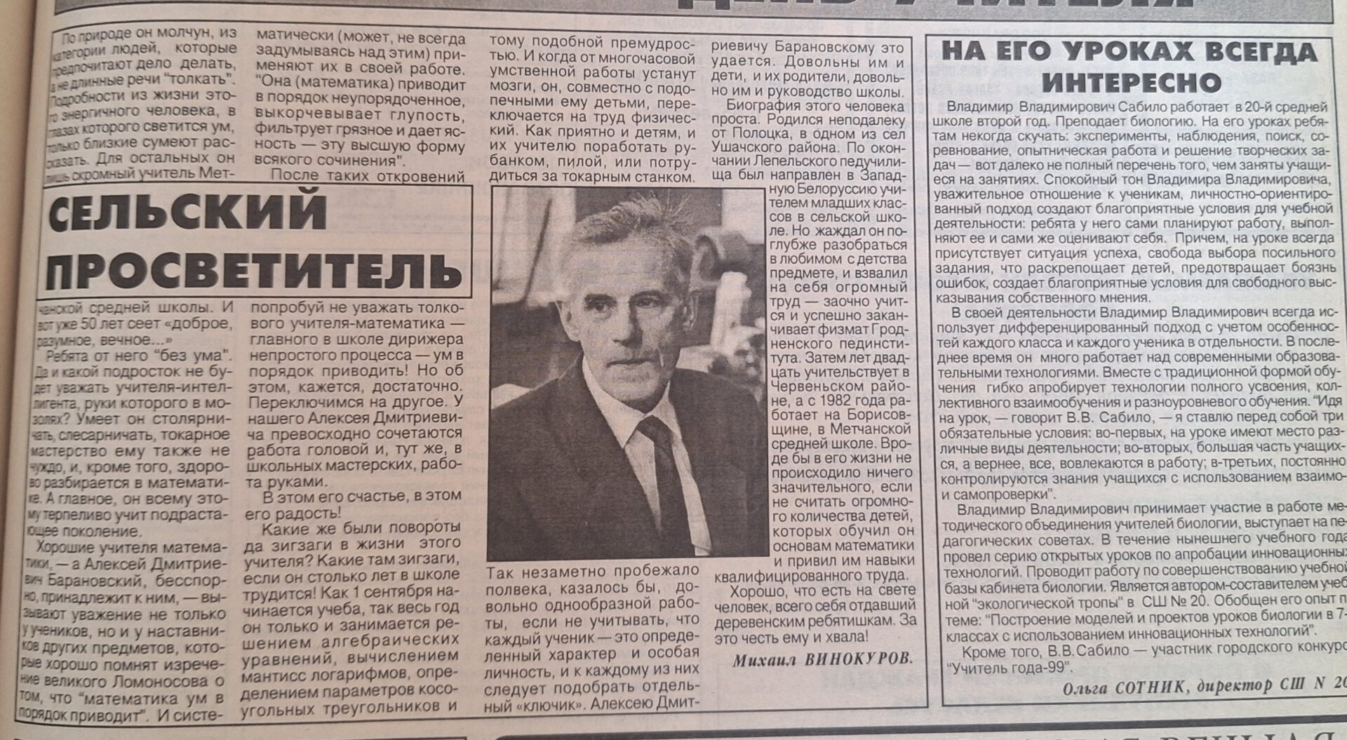 Листая страницы «Адзiнства» за 1999 год, читая статьи об образовании, понимаешь, что педагоги оставались важными фигурами в обществе. Они работали во время реформ и перестройки системы образования, социальных преобразований, получали невысокие зарплаты и испытывали другие сложности, но многие верно служили выбранному однажды делу.