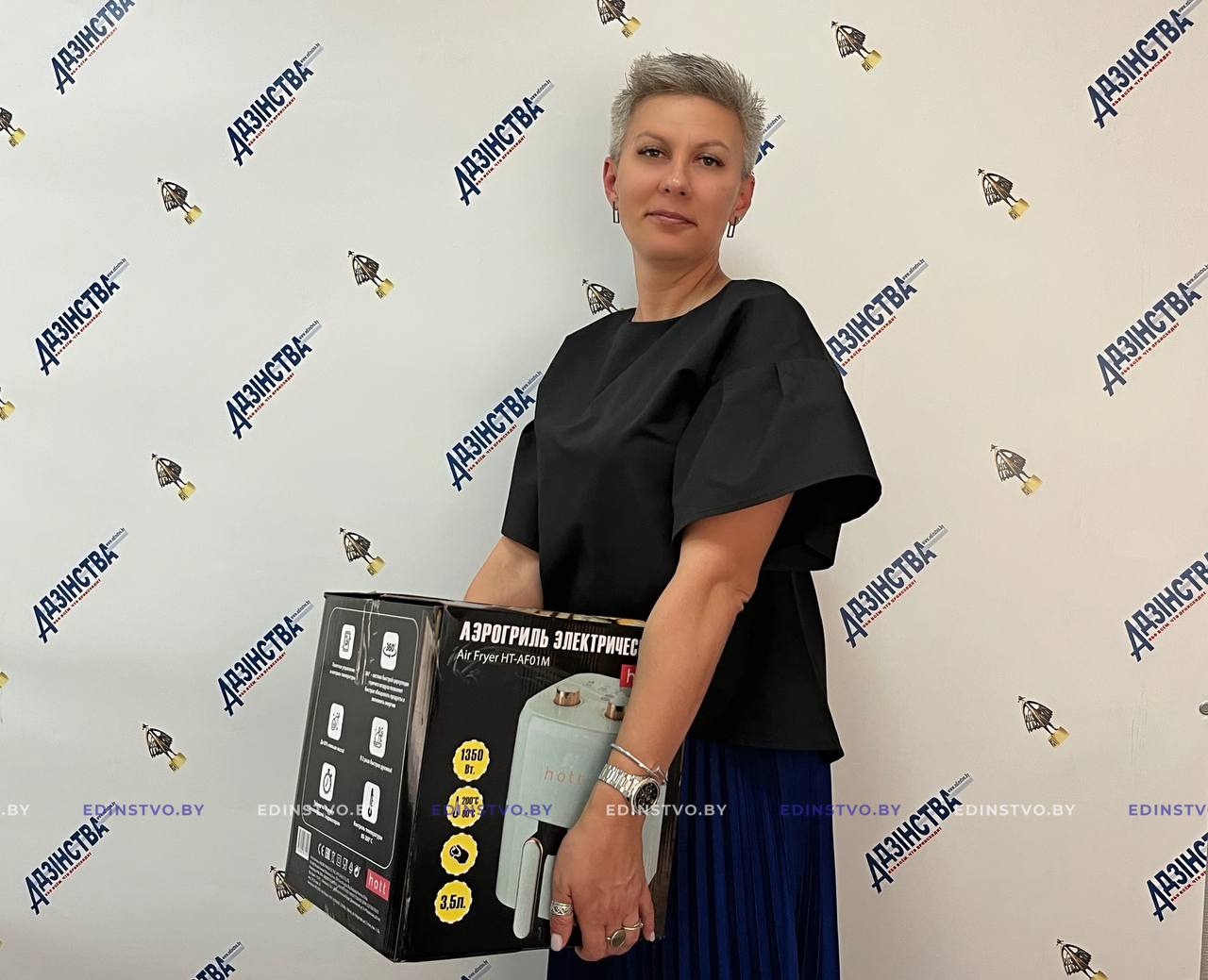Победители рекламной игры «Испытай удачу!» от газеты «Адзiнства» продолжают получать свои призы в редакции. Одной из тех, кому улыбнулась удача, стала Екатерина Мирук-Якубовская – заведующая Староборисовским детским садом Борисовского района. Борисовчанка оформила полугодовую подписку на газету и приняла участие в рекламной игре. Удача оказалась на ее стороне, и в редакции она получила свой приз – современный аэрогриль Hott.