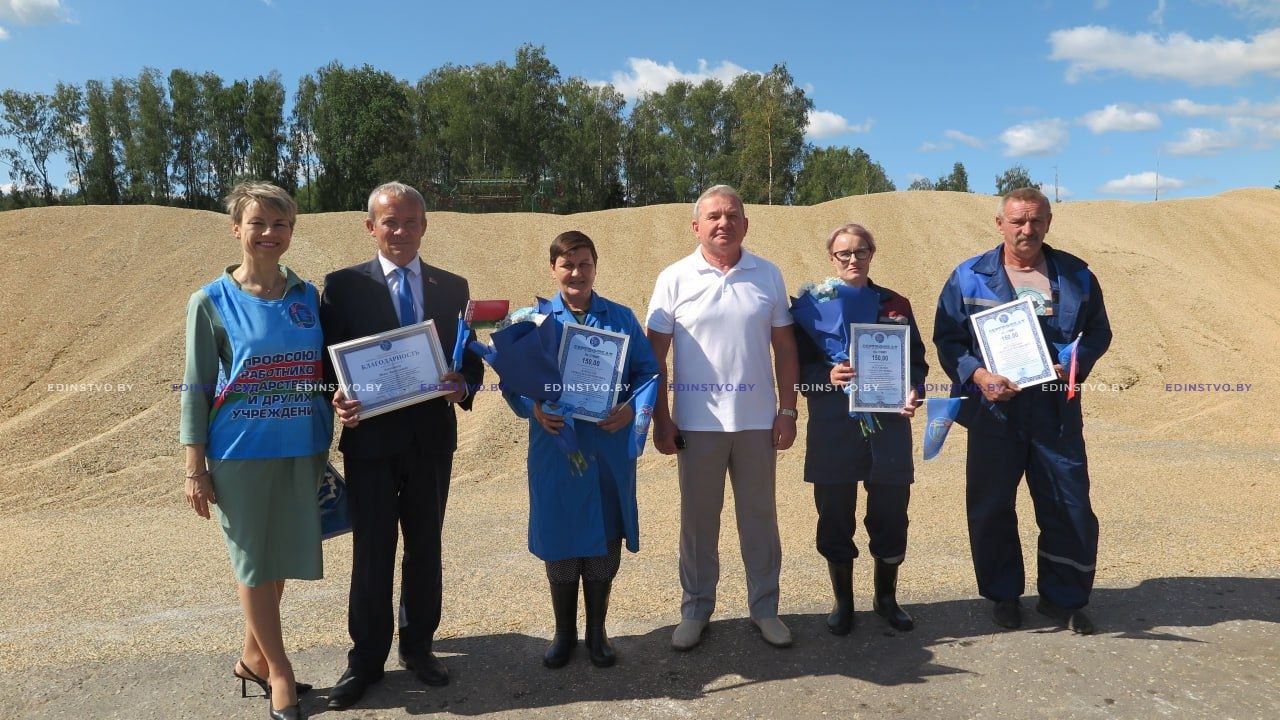 У тружеников села сейчас жаркая пора — жатва в полном разгаре. С каждым днем на Борисовщине растет число тысячников, которых чествуют прямо в поле. Хотя у Белорусского профсоюза работников государственных и других учреждений нет первичек в сельскохозяйственной отрасли, он не остается в стороне от важных аграрных кампаний. Сегодня председатель республиканского комитета этого профсоюза Сергей Потапенко побывал в отделении «Моисеевщина» филиала «Большие Новоселки» УП «Борисовский комбинат хлебопродуктов». Рассказываем подробности.
