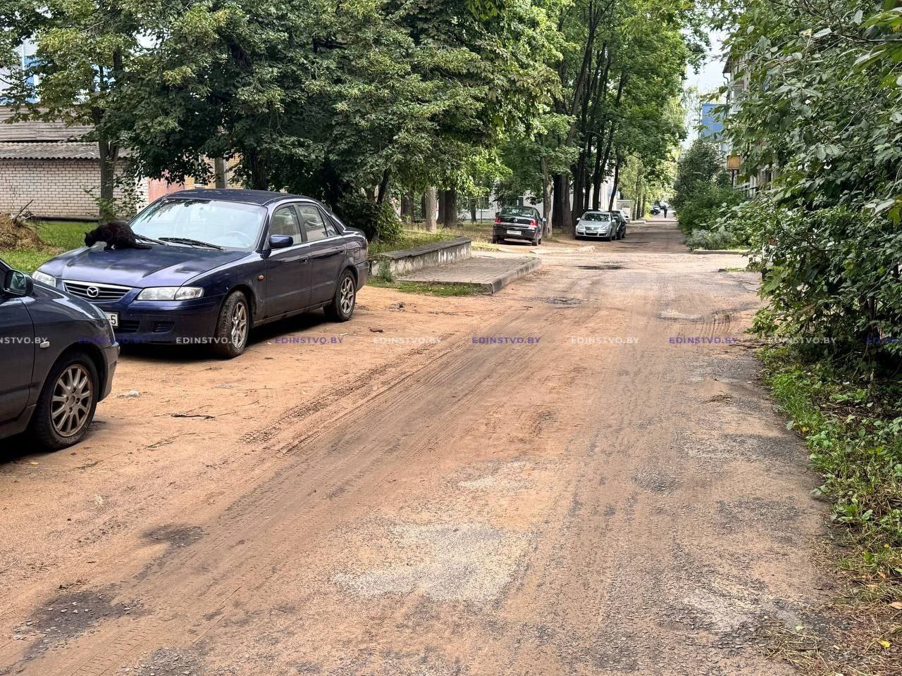 В качестве временной меры там теплосетями УП «Жилье» произведена подсыпка дороги песком, а также некоторые ямы заделаны асфальтогранулятом.