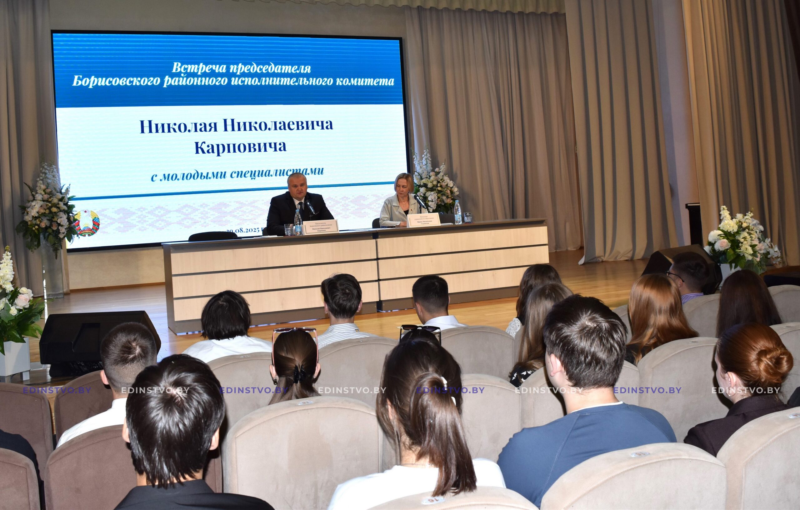 В средней школе №25 г. Борисова состоялась встреча председателя Борисовского райисполкома Николая Карповича с молодыми специалистами системы образования, прибывшими на свои первые рабочие места в этом году. Также в диалоге с молодыми педагогами участвовала начальник управления по образованию райисполкома Ирина Садовская.