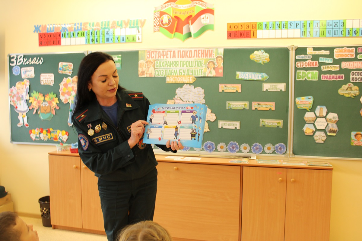 В связи с этим работники Борисовского горрайотдела по чрезвычайным ситуациям провели с учащимися первых классов «Уроки безопасности». Во время которых малышам рассказали о правилах безопасного поведения и соблюдении правил пожарной безопасности, напомнили номера экстренных служб и вручили красочные и познавательные подарки от МЧС.
